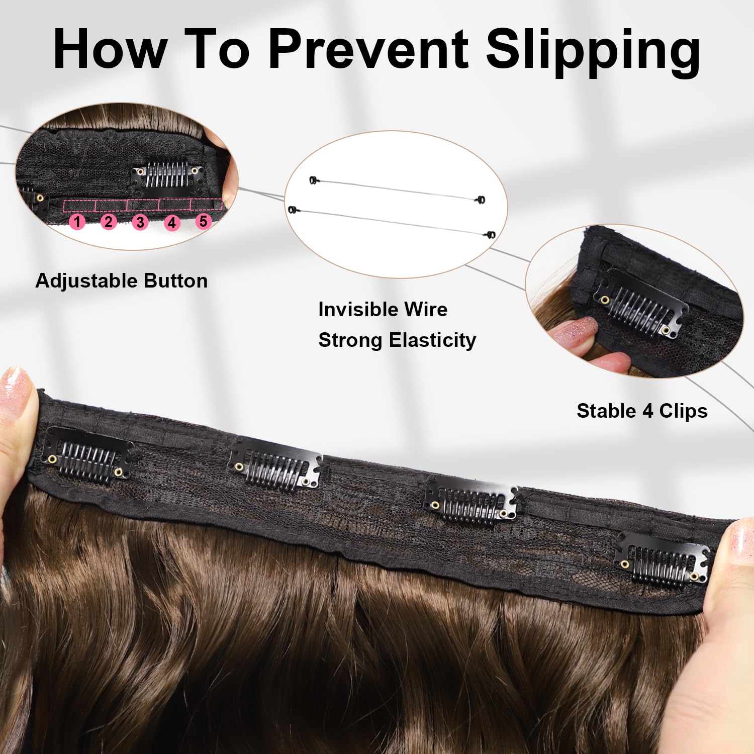 2. Prettify Hair Quantity Size Conveniently: 1. put the clear elastic string on the highest of your head like a scarf, then clip the remainder of the halo hair extension with 4 bobby clips. Lastly, merely comb the hair to cover the clear string. 2. For purchasers with hair loss and are delicate to bobby pins, solely use 4 clips to repair it. 3. For purchasers usually are not used to clips, utilizing tender string to repair the hair extension is healthier. No tape, no glue.