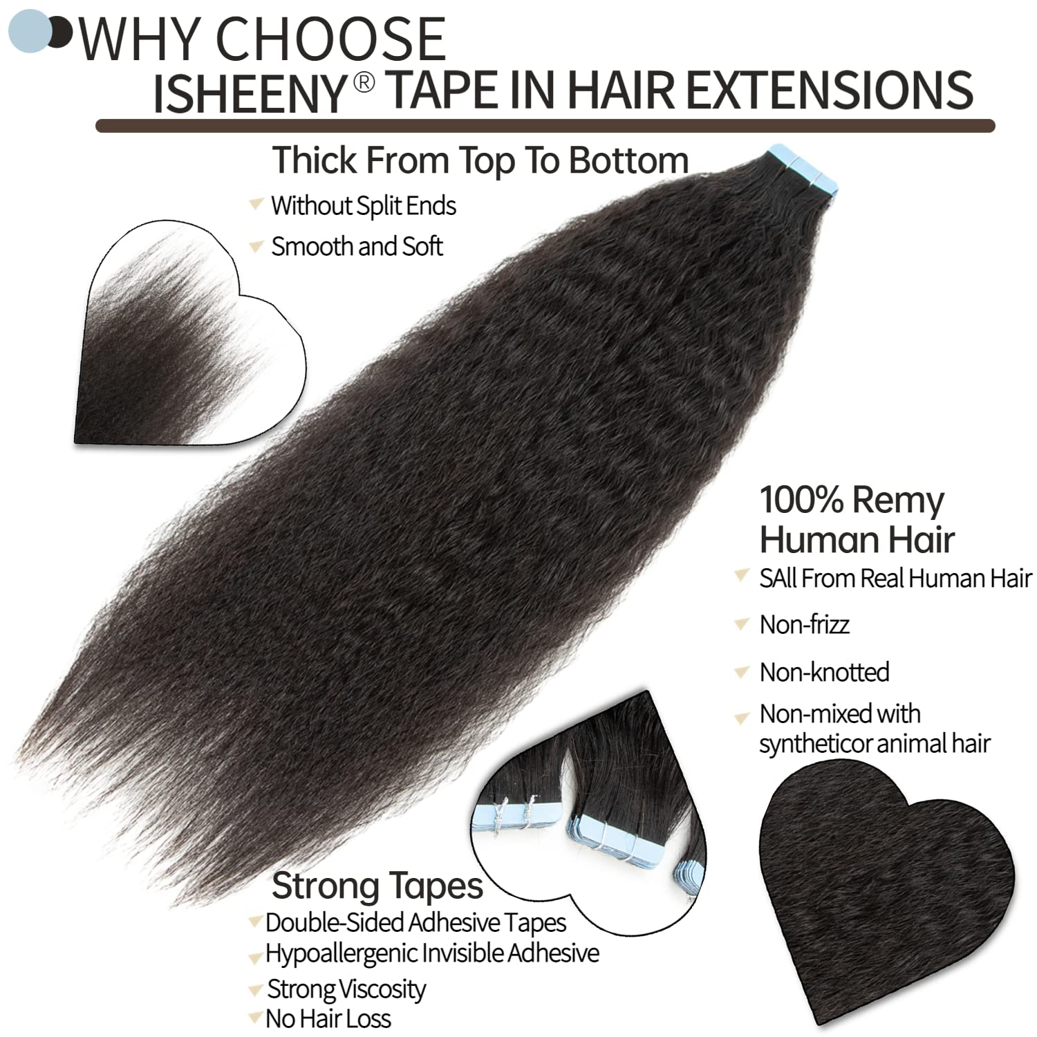 Obtain salon-quality outcomes with ISHEENY Kinky Tape In Hair Extensions Human Hair. These tape in hair extensions are created from 100% remy human hair, making certain a comfortable, pure look that seamlessly blends with your personal hair.