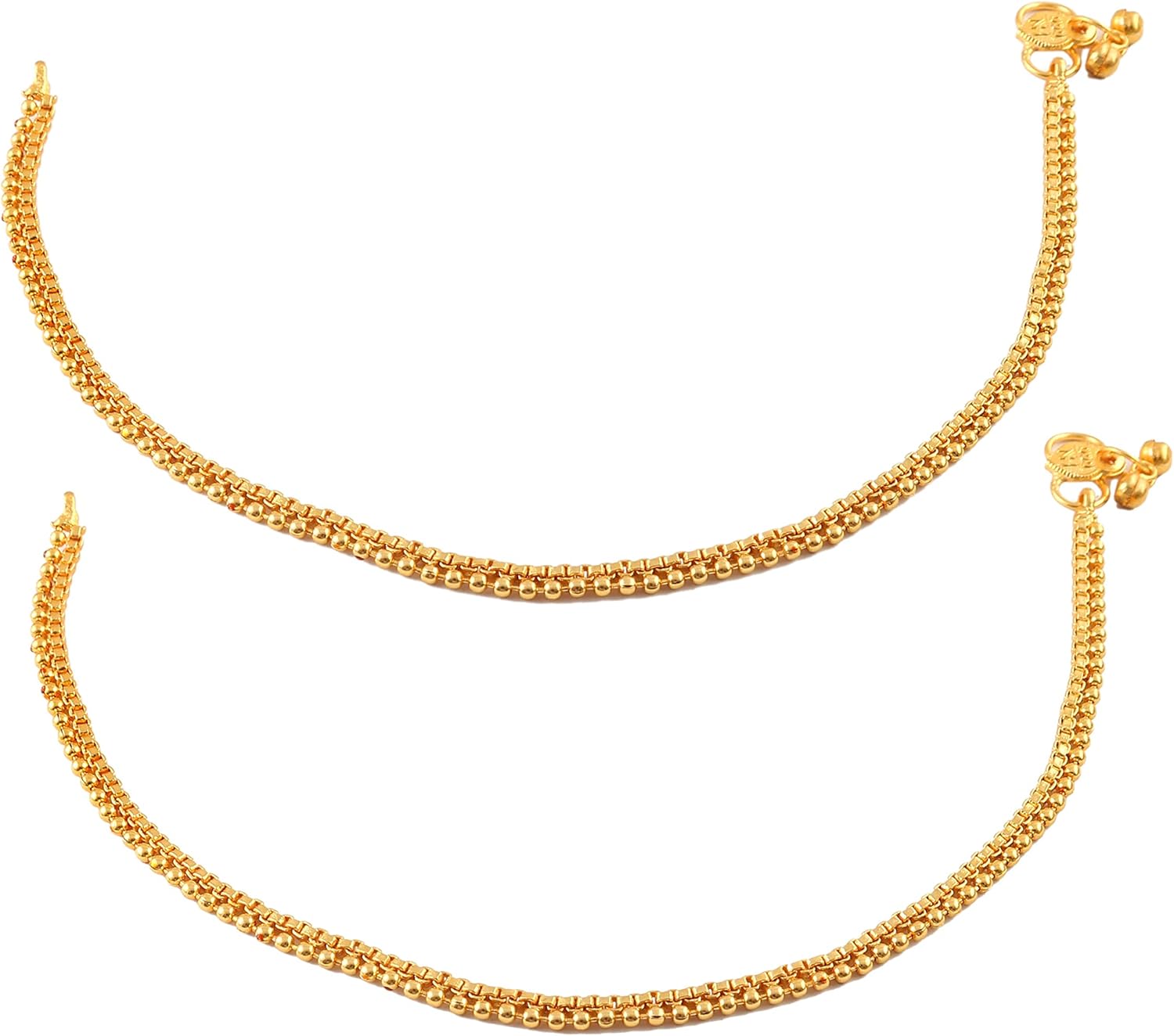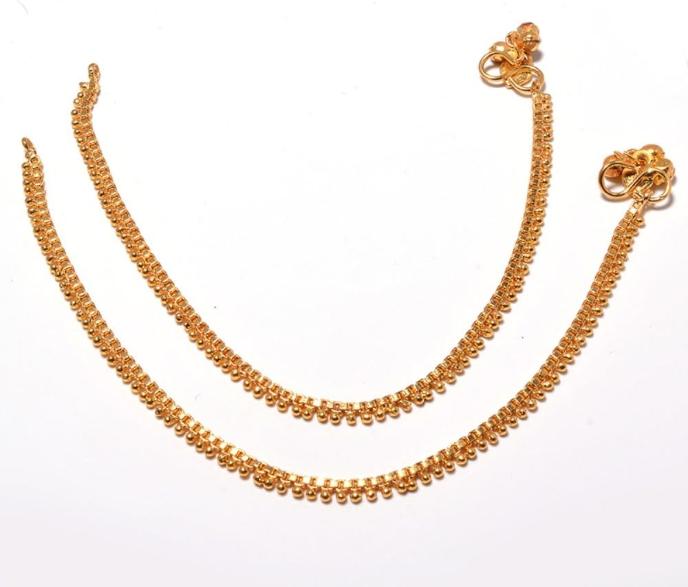 Jewar Anklet Payal Indian Traditional CZ Ad Plain Simple Handmade Natural Gold Plated Jewelry