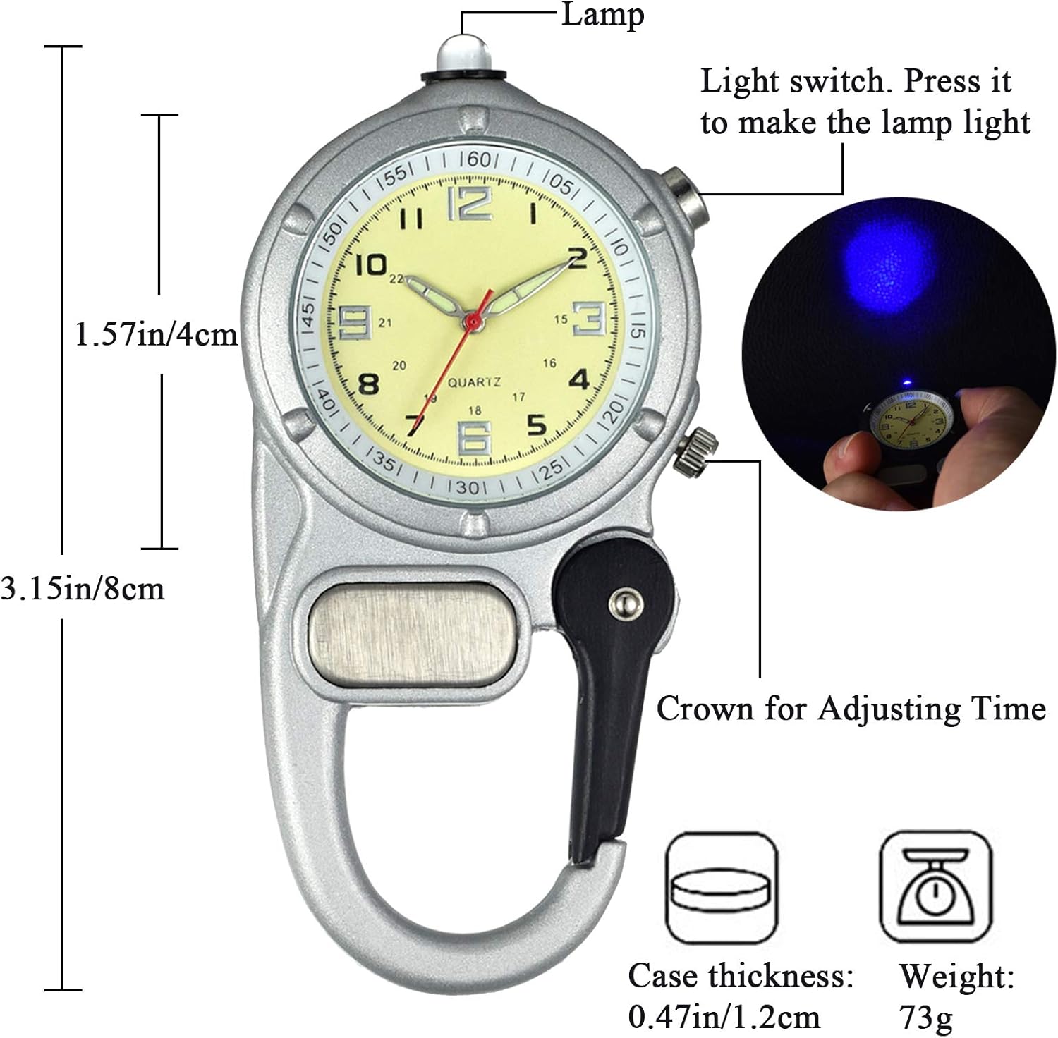 JewelryWe Males Girls Clip-on Quartz Watch Backpack Fob Belt Watch Luminous Mini Microlight Pocket Look ahead to Rock Climbing Medical doctors Nurses Outside Actions