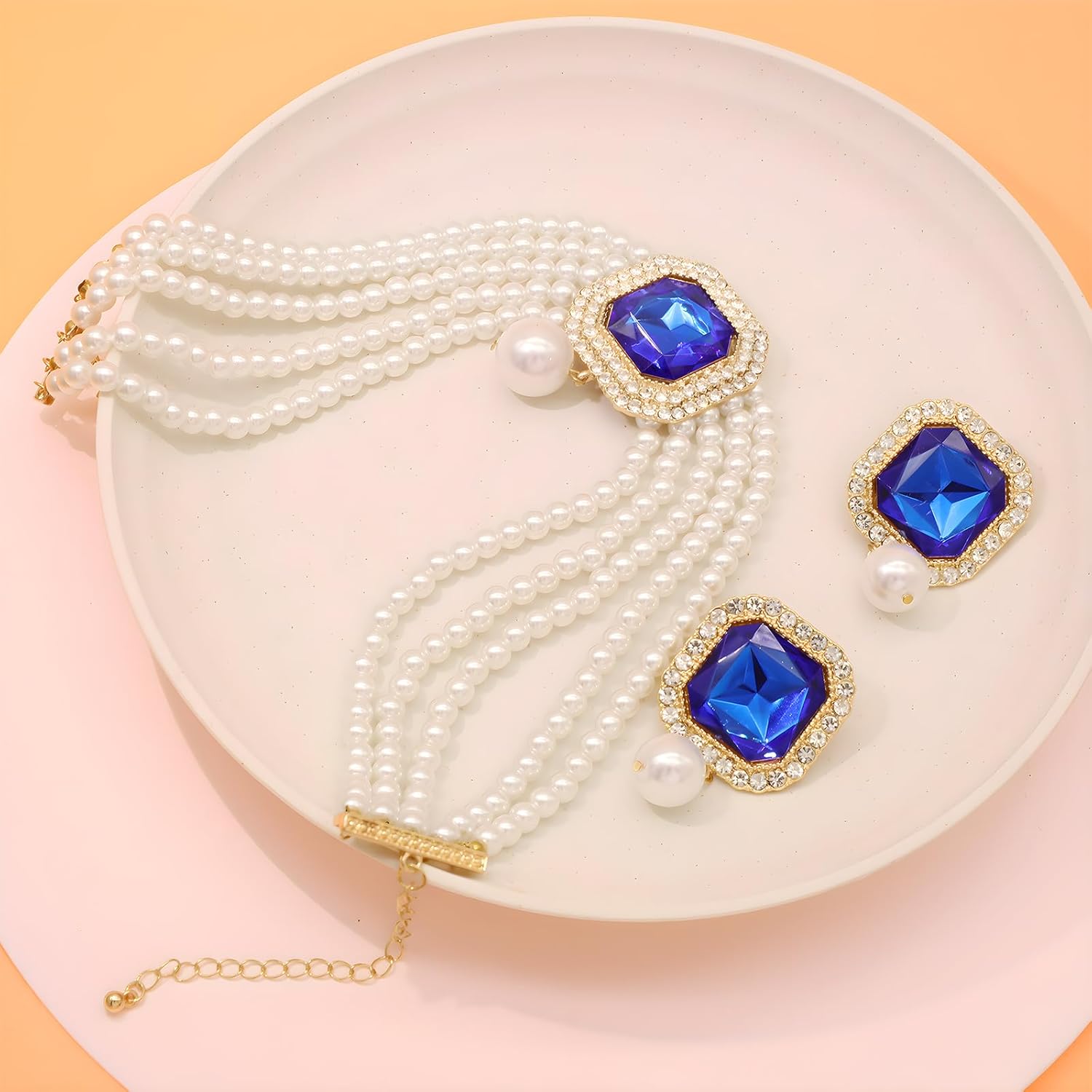5 Layer Colorful Crystal Rhinestone Pearl Choker Necklace