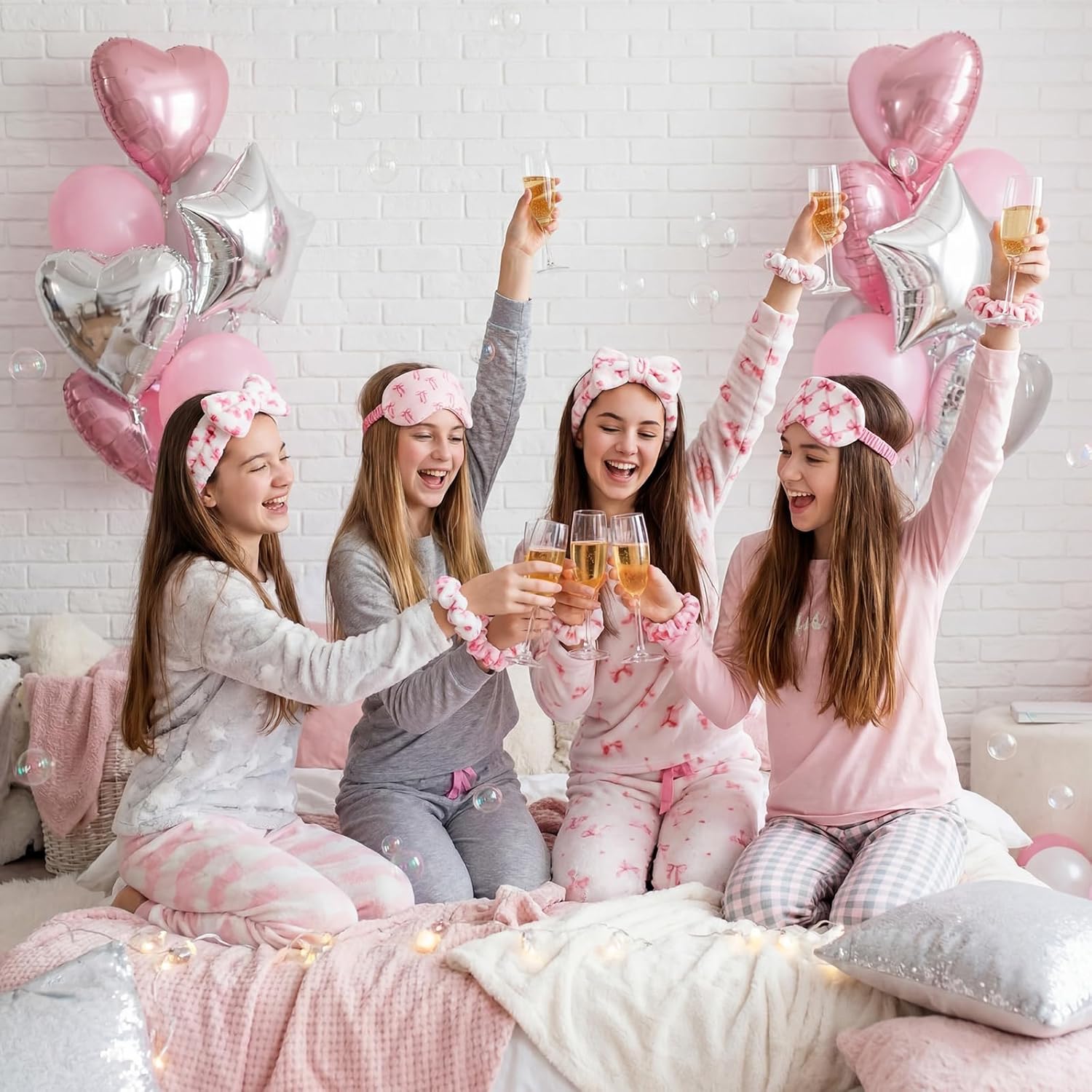 Kajaia 48 Pcs Sleepover Party Supplies for Girls Spa Part Favor Slumber Party Supplies for Women Headband Eye Mask Hair Scrunchies Toiletry Bag