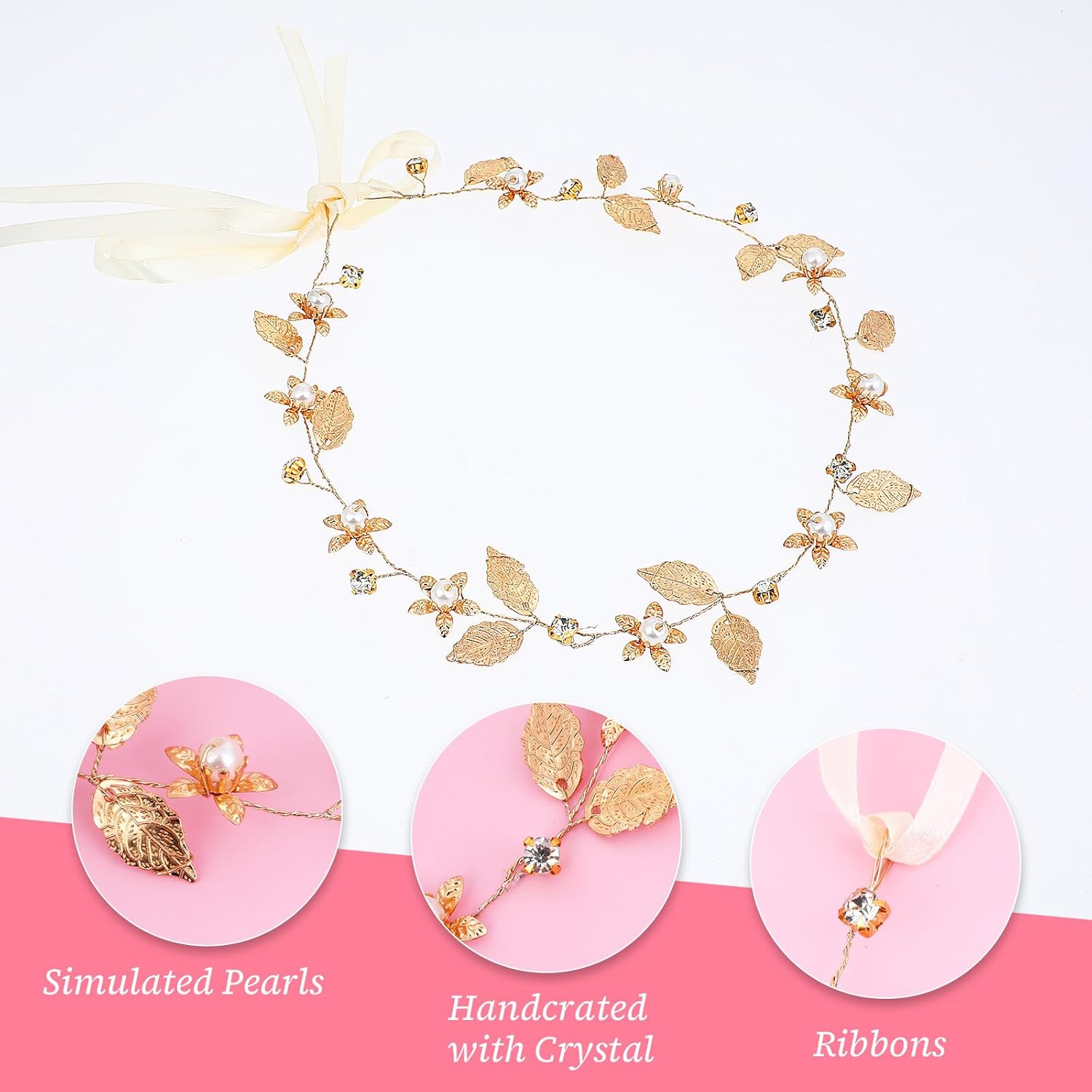 【Broad Software】These gold hair vine are good for brides, bridesmaids and flower ladies, and are best equipment for weddings, events, proms, engagements, anniversaries and different particular occasions, exhibiting your class.