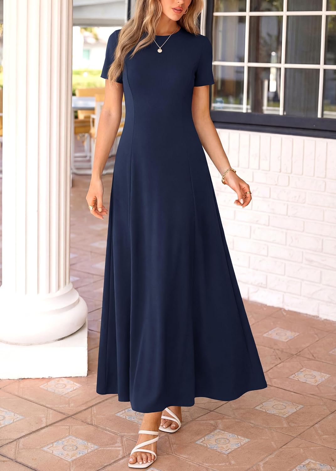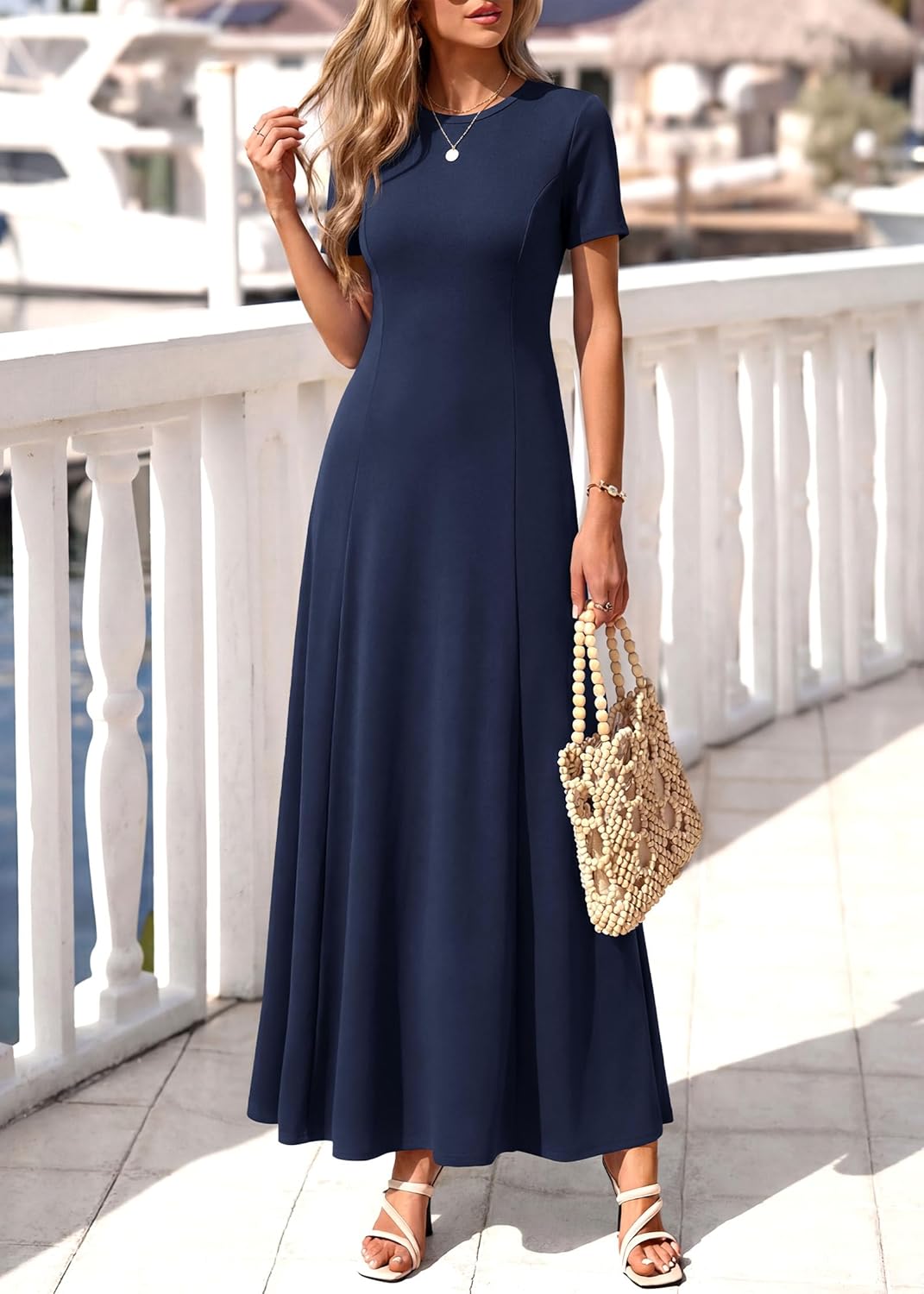 KIRUNDO Maxi Attire For Girls 2026 Brief Sleeve Flowy Seaside Trip Lengthy Costume