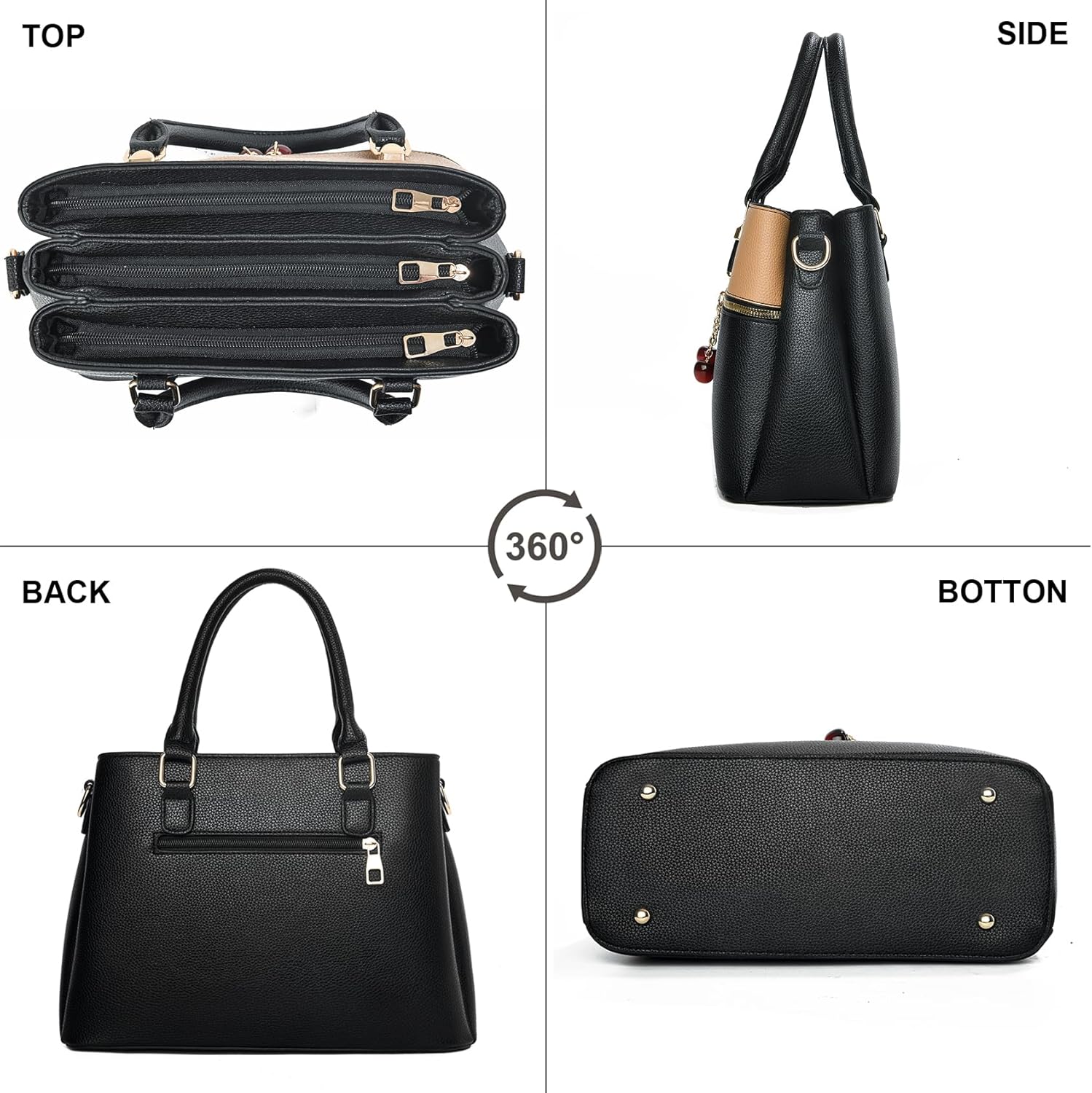 3 Zip Compartments Tote Bag