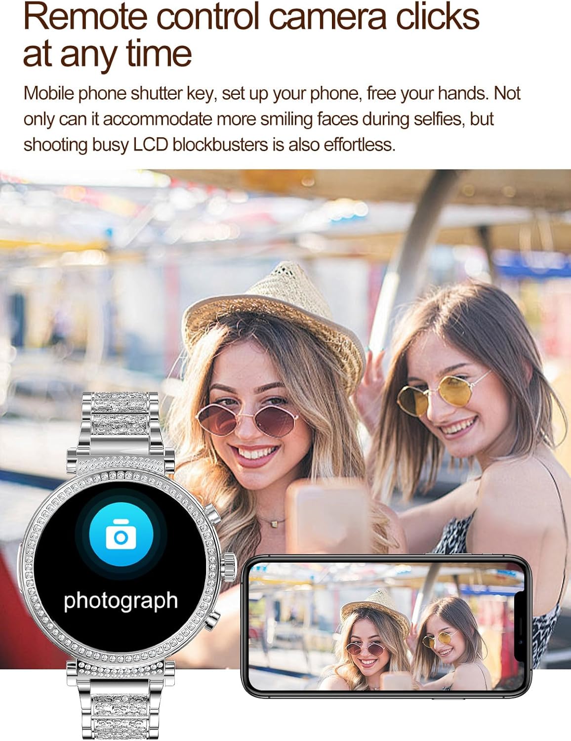 【Vogue Design Ladies’s Sensible Watch】The ladies’s round sensible watch contains a 1.27-inch high-definition full contact coloration display screen, offering you with a greater visible and operational expertise. The bezel is adorned with 128 sensible diamonds, including magnificence and allure to each motion.