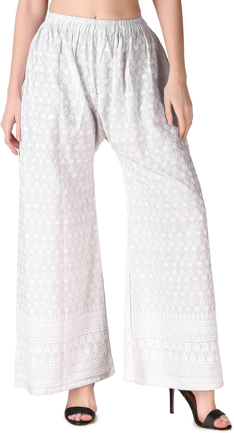 Elevate your fashion with the ladyline Girls’s Embroidered Hakoba Chikhan Palazzo Pant. Crafted from premium rayon material, these wide-leg pants function intricate Hakoba Chikankari embroidery, including a contact of magnificence to your ensemble. Designed for consolation, these pants are good for any physique kind.