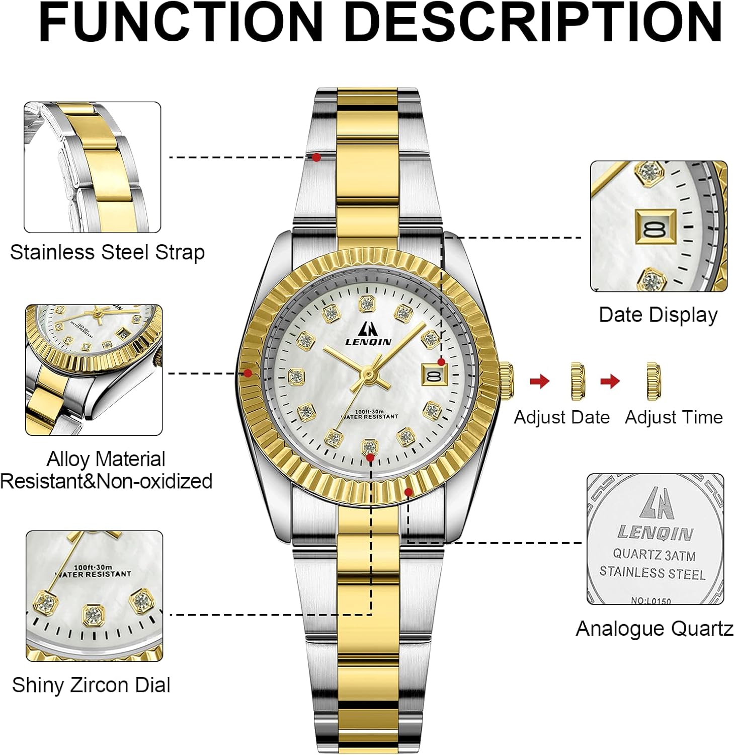 LN LNQIN Womens Watch Analog Quartz Watches for Women Waterproof Ladies Watches Easy Read Women’s Wrist Watch with Stainless Steel Band