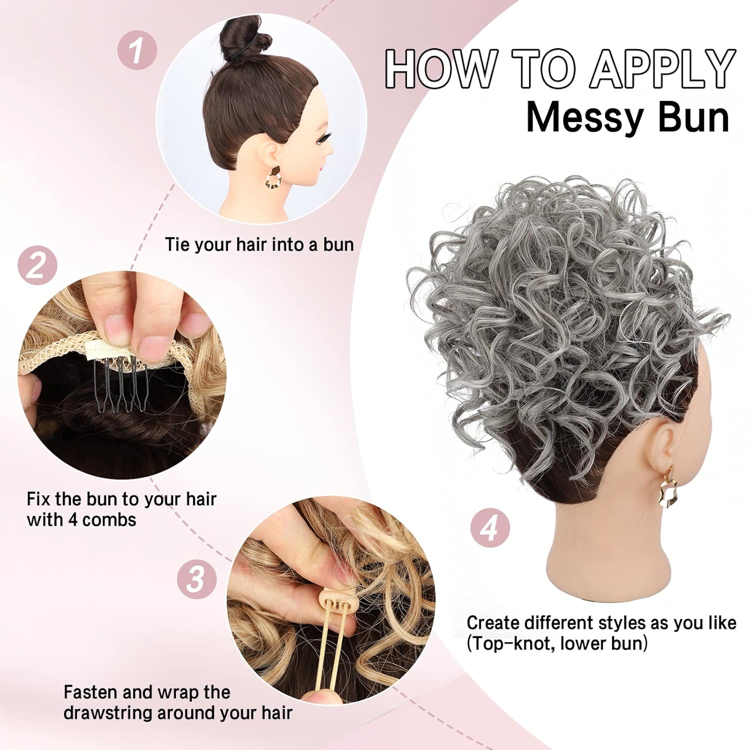 [Style Introduction]: The Messy bun with drawstring ponytail has a pure curl in the course of the bun and a pure curvature round it, which supplies it a extra plump and pure look.