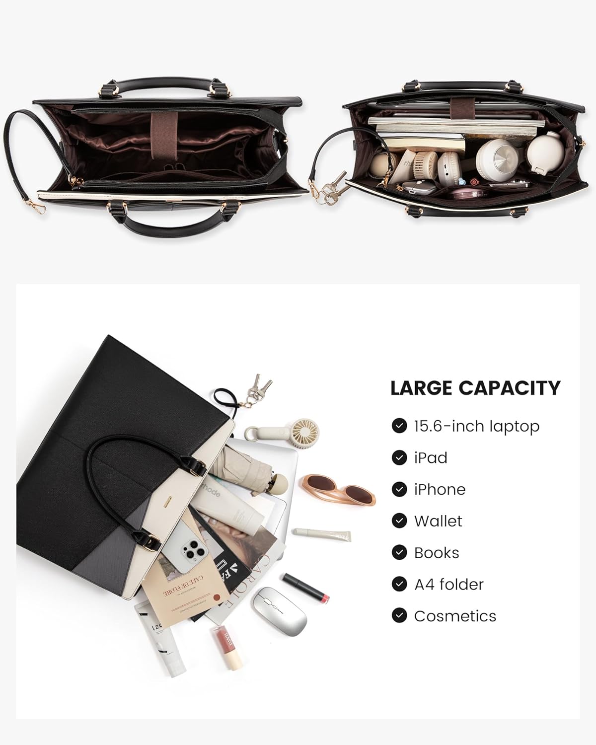 【Excellent Measurement for Laptop computer Bag】Dimension of the tote bag is 17″ L * 6.5″ W * 11.5″ H; Weight: 2.58 lbs. The space from the highest deal with to the tote bag is 8”. The adjustable shoulder strap is 37 to 46 inches lengthy. It’s giant sufficient to maintain your each day objects organized. Its minimalist and stylish look makes it appropriate for each formal and informal events.