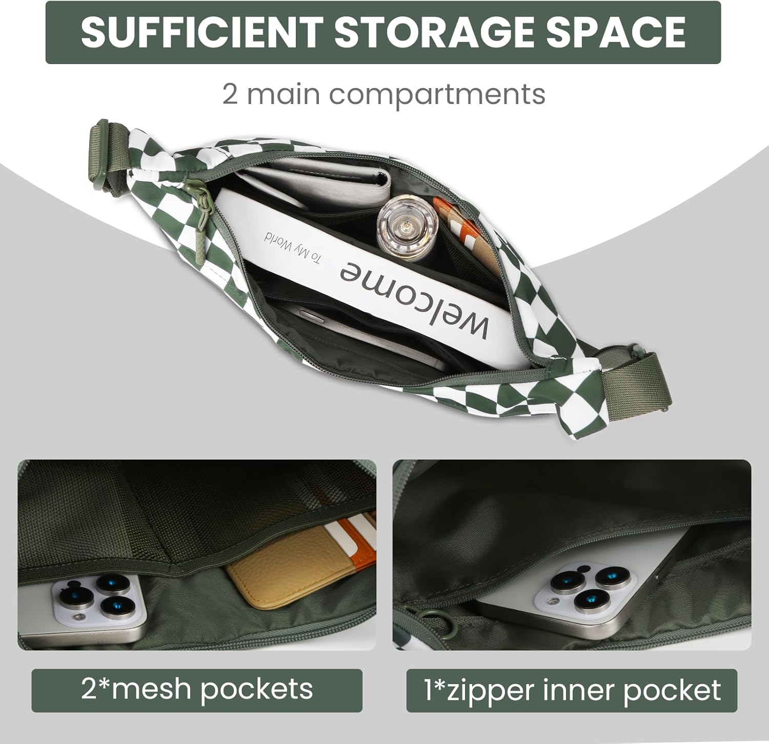 Lushandy Nylon Crescent Crossbody Bags for Women, Medium Slouchy Hobo Crossbody Bag Checkered Purse Luna Bag for Travel | Multi-pocket, Lightweight, Waterproof