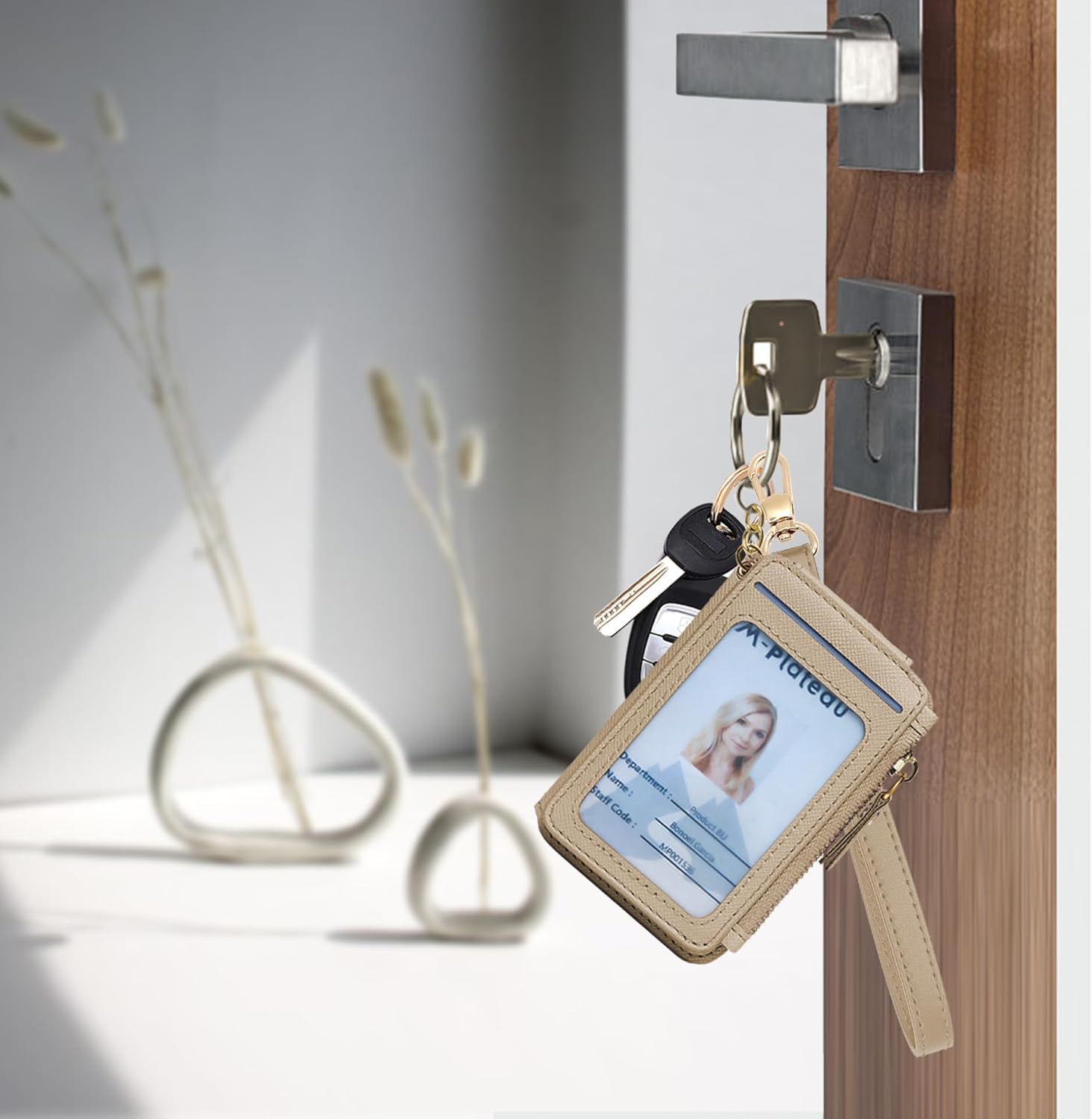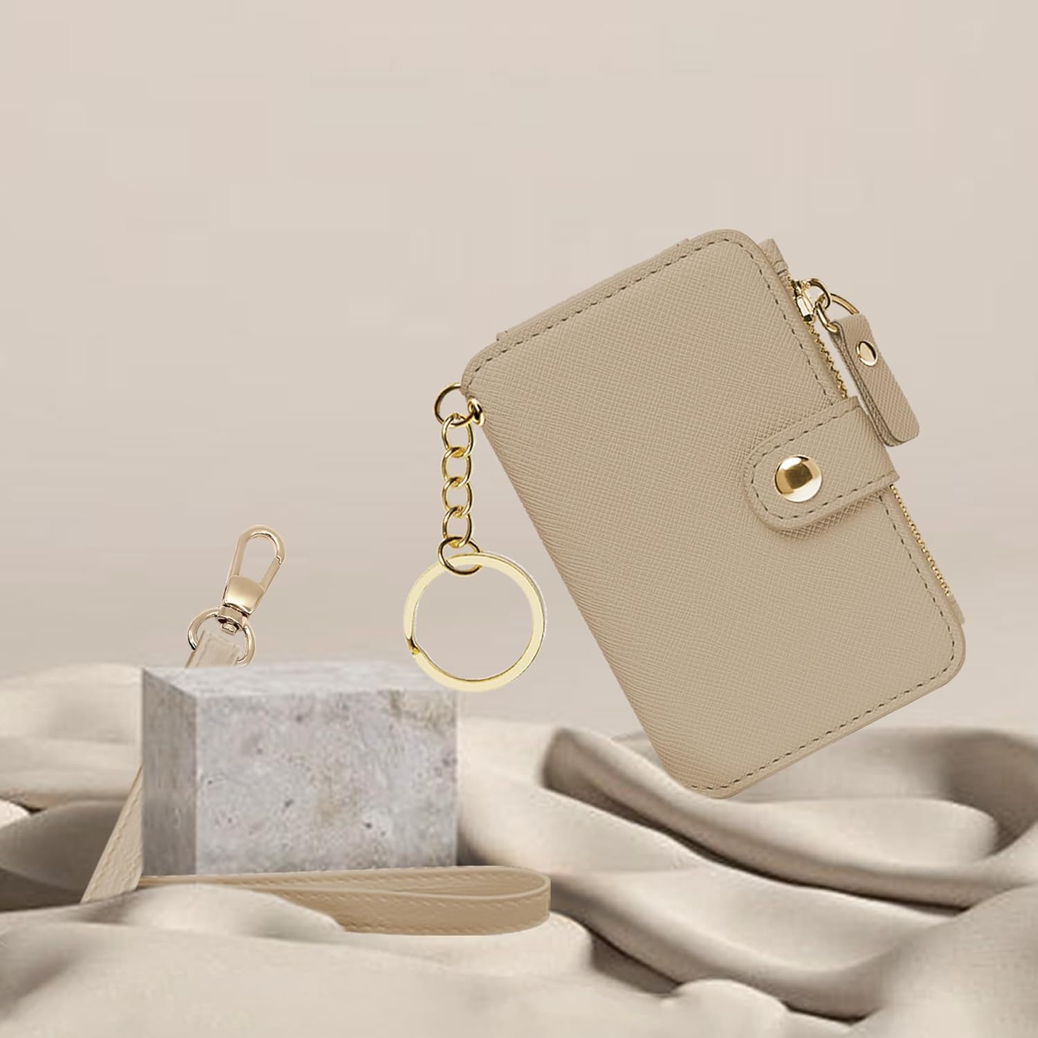 Wristlet keychain card holder card pocket PU leather-based purse matel key ring for girls women.