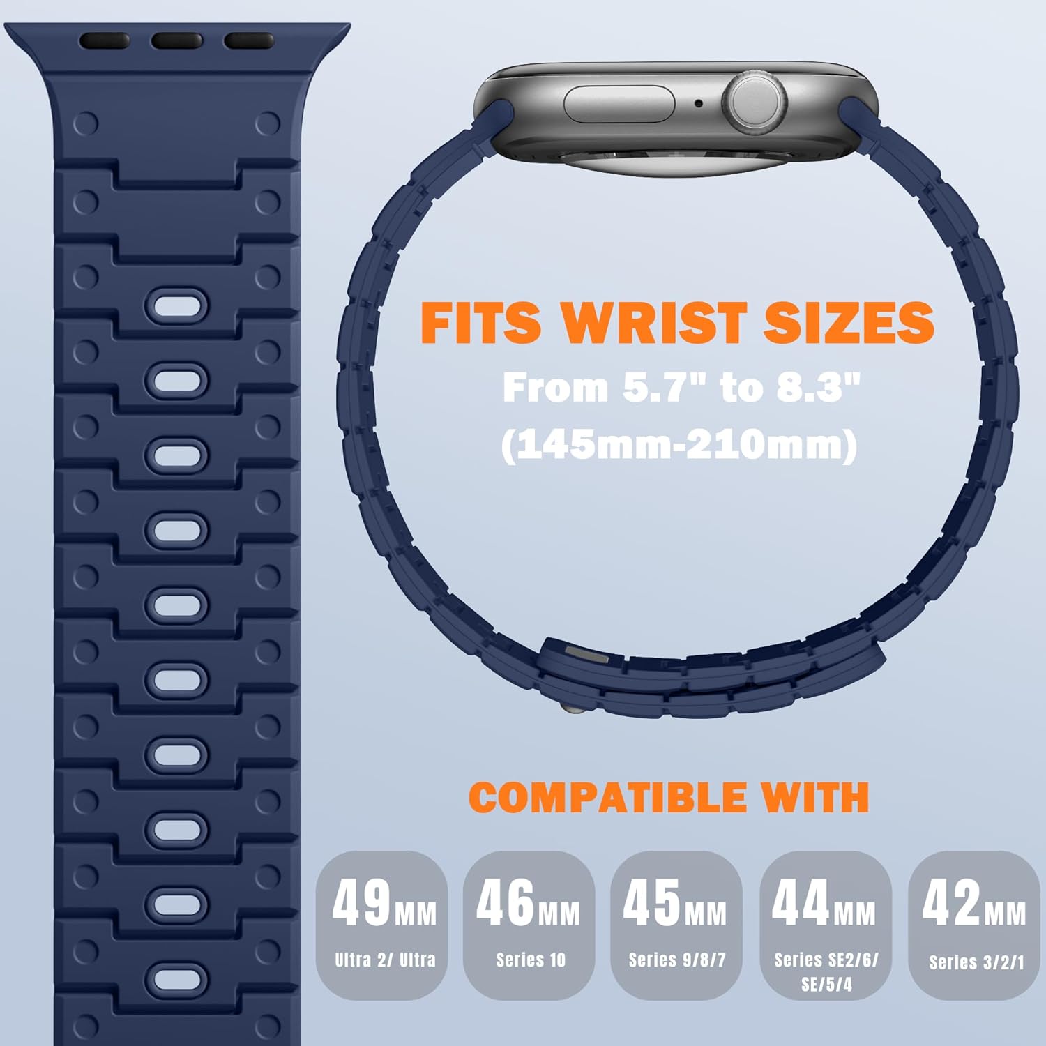Bandletic Robust Magnetic Band Suitable with Apple Watch Bands for Males Girls, Sport Silicone Strap Magnet Hyperlink Wristband for Collection iWatch 49mm(Ultra2/Extremely),46mm(Collection 10),45mm(9/8/7),44mm(SE2/SE/6/5/4),42mm(3/2/1)