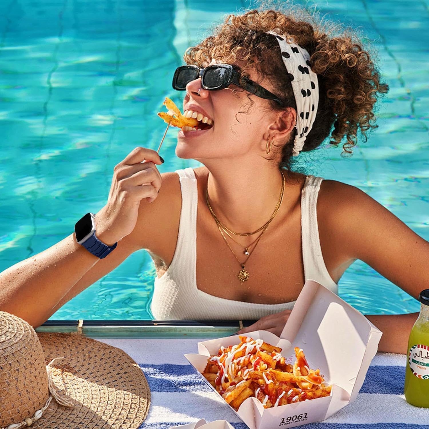 The smooth silicone materials is snug, making it good for long-term put on, and doesn’t irritate pores and skin, which is an enormous plus because you put on your watch all day. It’s additionally light-weight, solely 29g, so that you barely discover it’s there.