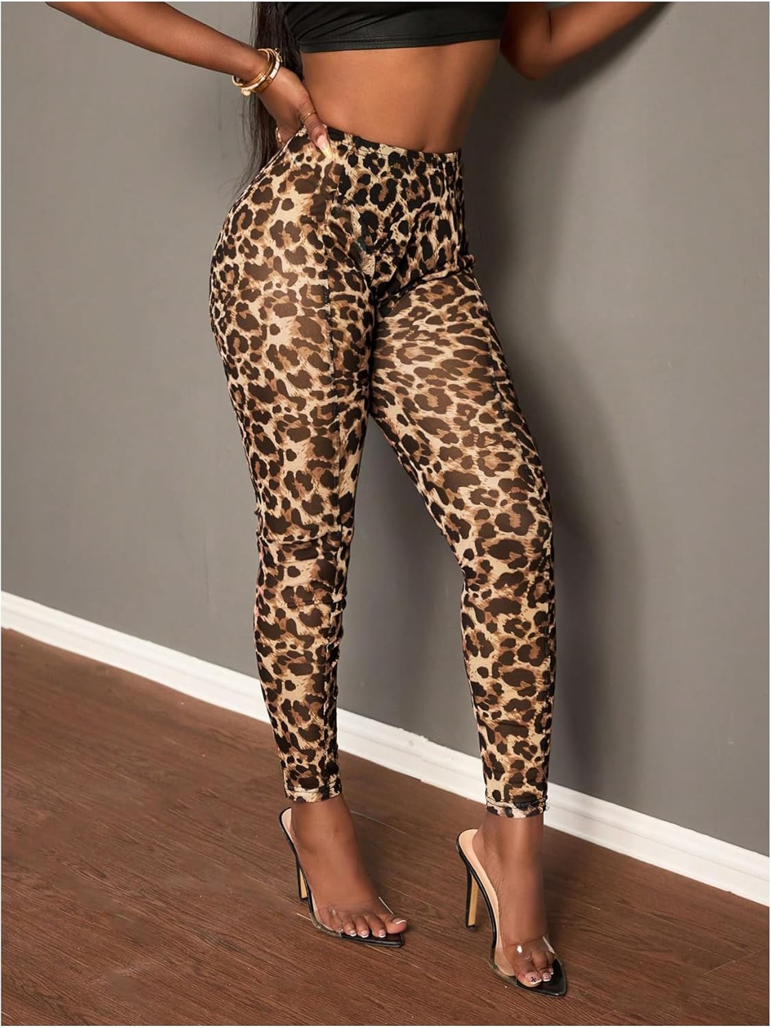 MakeMeChic Women’s Leopard Print Mesh Sheer Leggings Stretch Skinny Yoga Pants