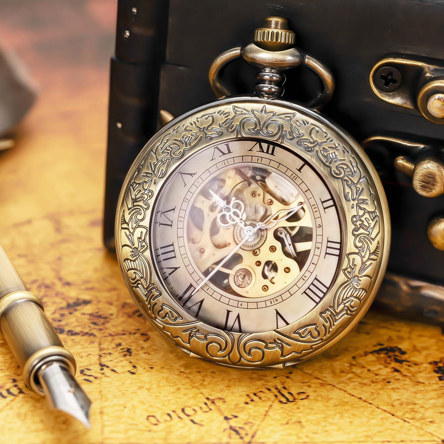 Be the first to review “Mechanical Pocket Watch, for Men Women Special Magnifier Half Hunter Engraved Case Roman Numerals with Chain”