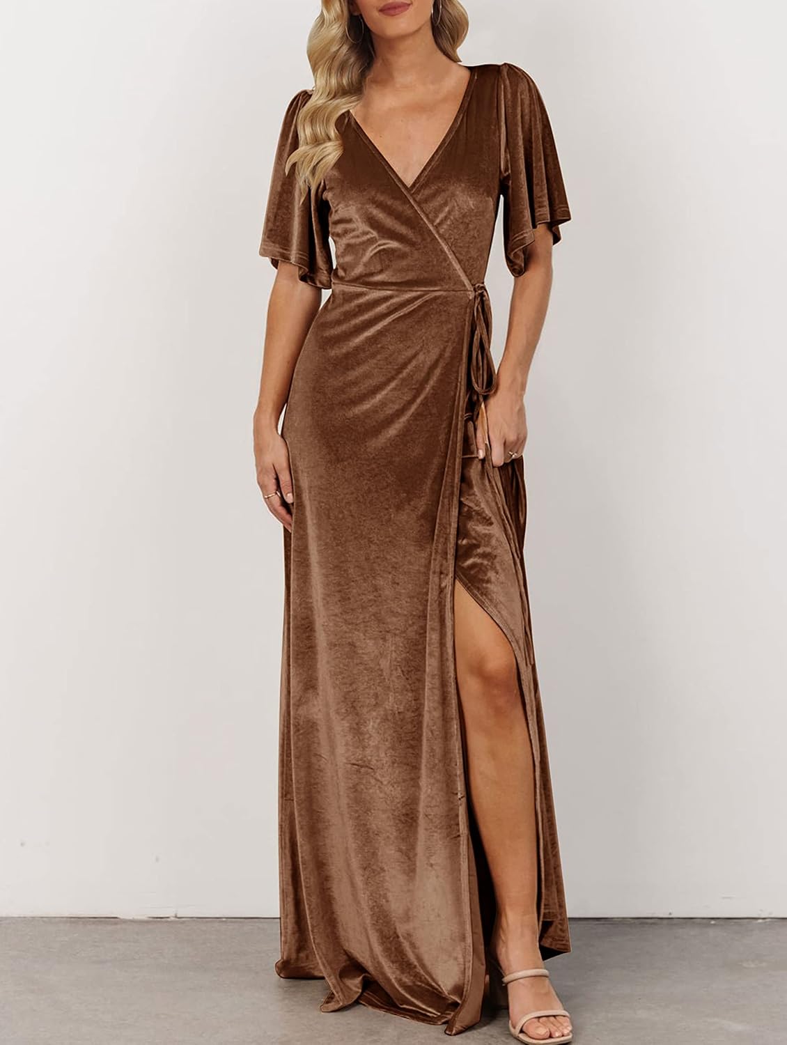 Velvet Wrap Gown Tie Waist