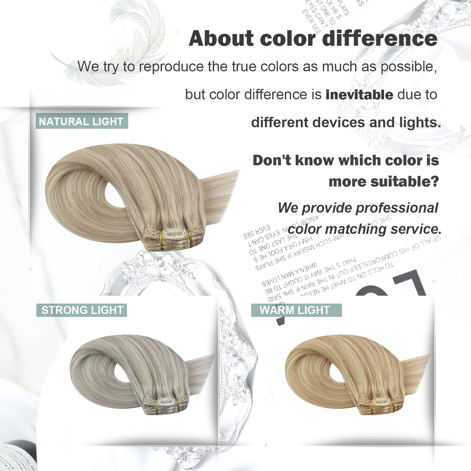 Moresoo Clip in Hair Extensions Remy Double Weft Human Hair Clip in Extensions Straight Hair Extensions for Women Ash Blonde Highlight with Blonde 10inch 5pcs 80g
