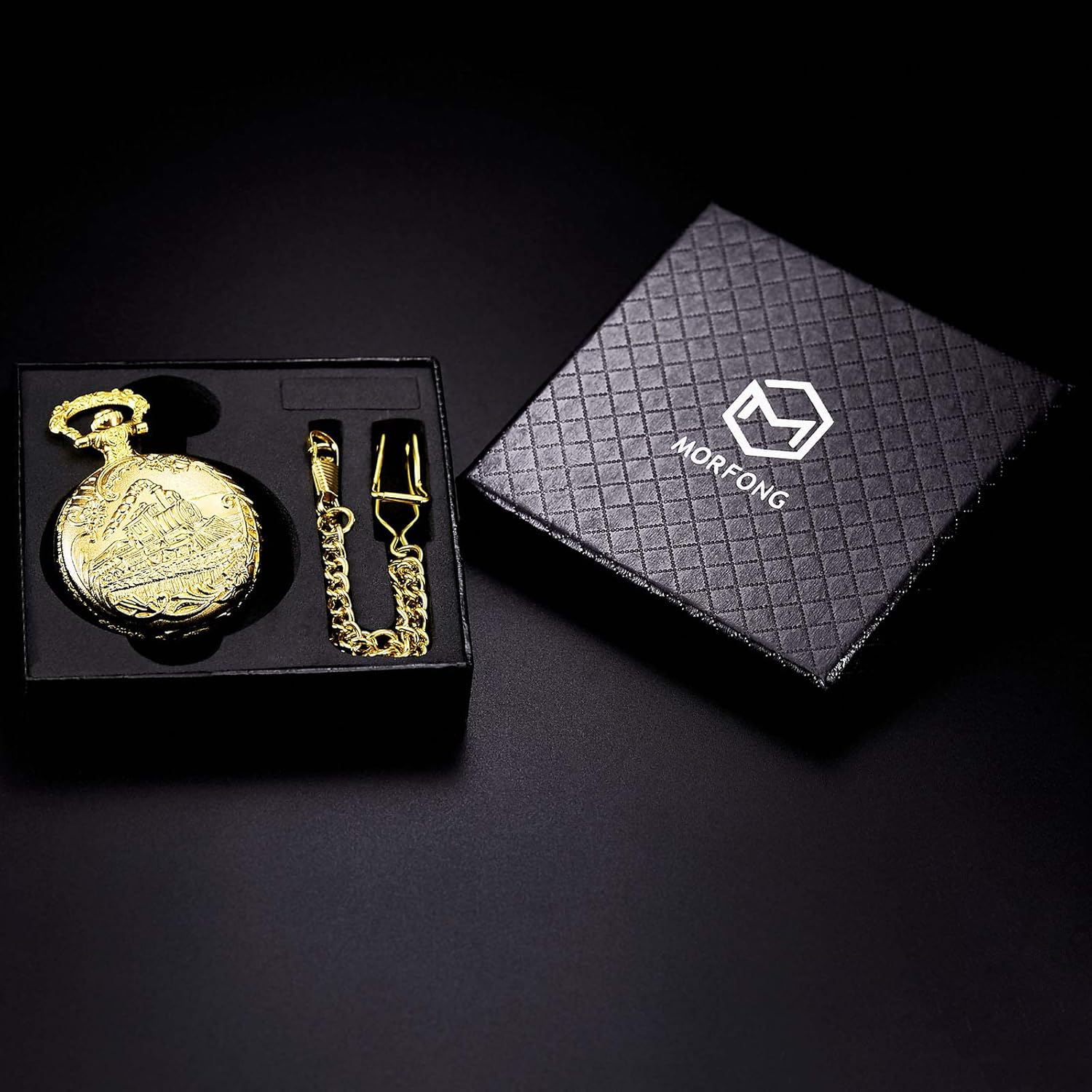 MORFONG Pocket Watch Steam Train Quartz Fob Watch for Men Women with Chain, Gold