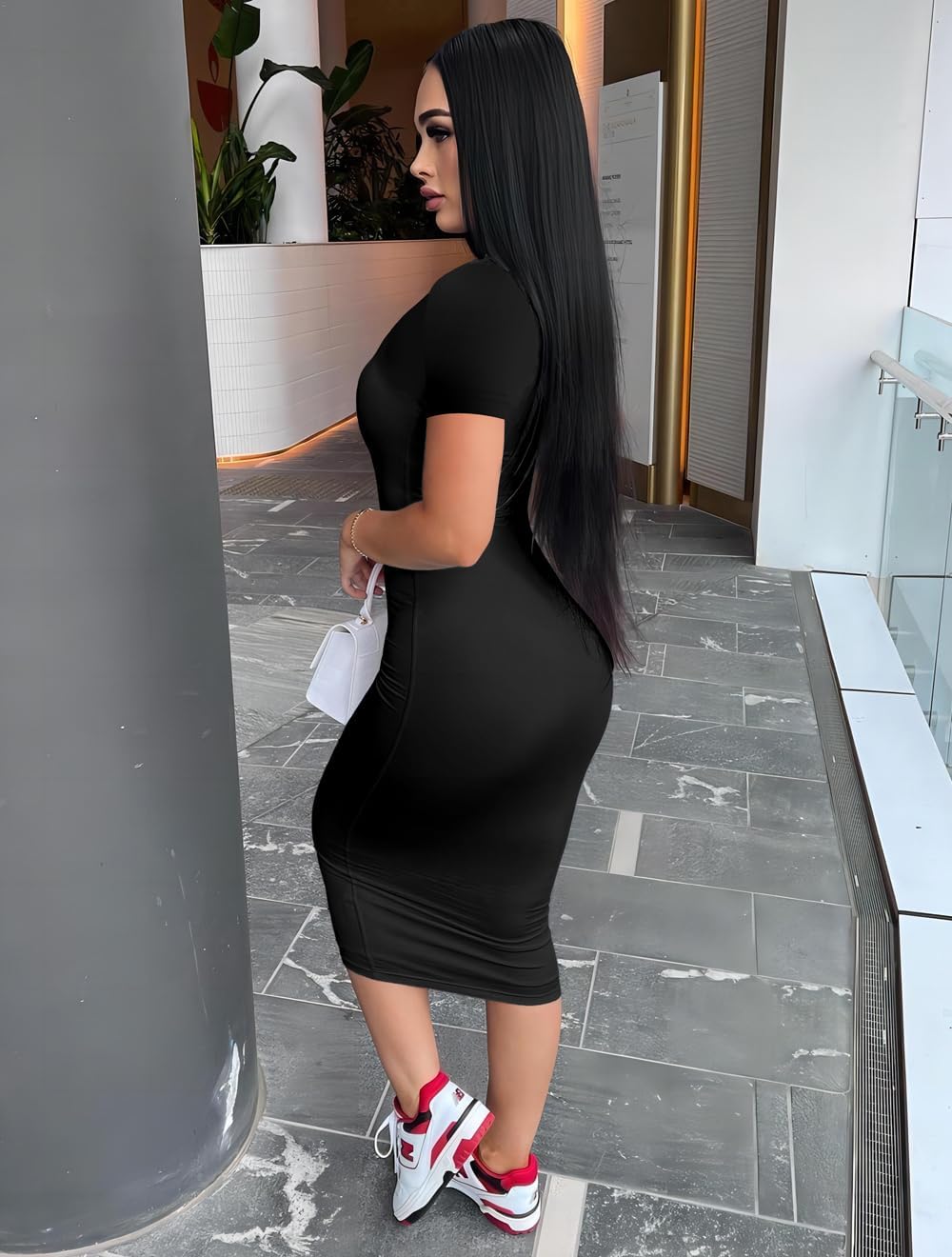 Comfy summer season pencil costume scoop neck with brief sleeve, trendy and stylish!