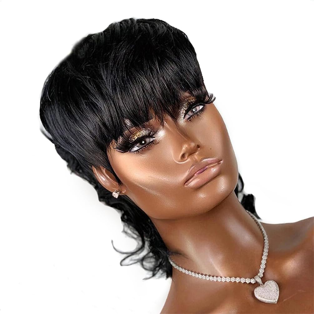 Hair Fashion: Brief Pixie Reduce Human Hair Wig With Bangs, Styling Free, Can Be Straightened And Curled; Very Straightforward To Care For.