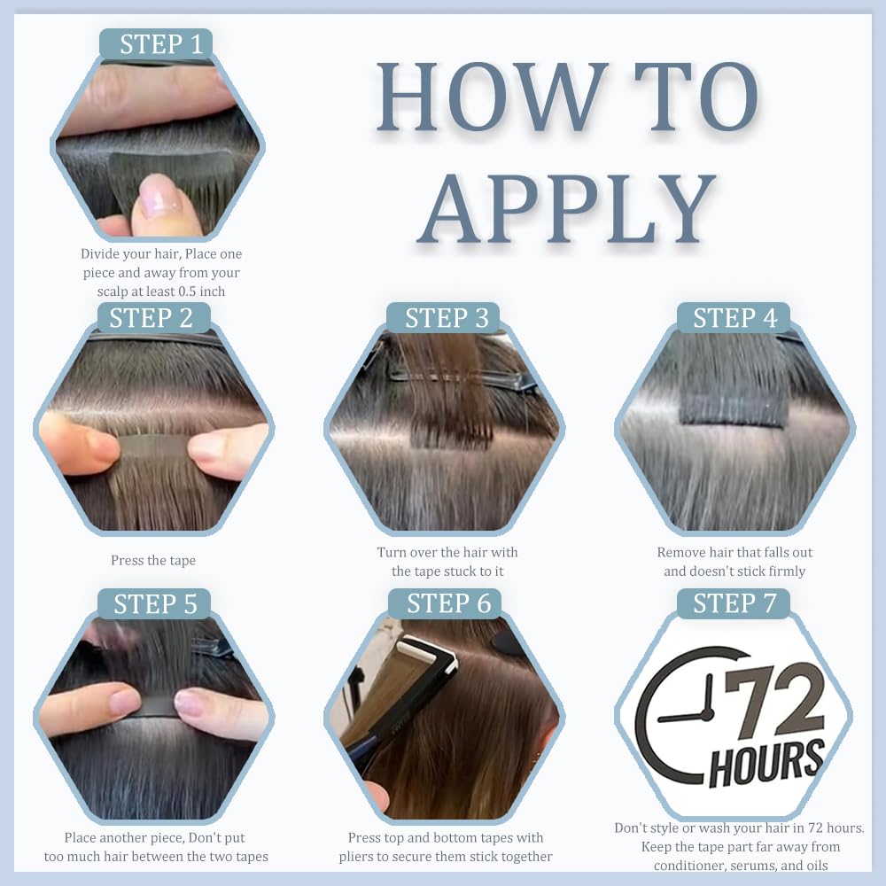 Uncover the secrets and techniques to long-lasting and silky: ①Please do not use hair conditioner earlier than set up; ②Use “Sandwich” carrying methodology, heating the tapes with a heating plate when set up can enhance the stickiness; ③Apply the conditioner or oils in your hair ends will assist the hair maintain shiny and silky
