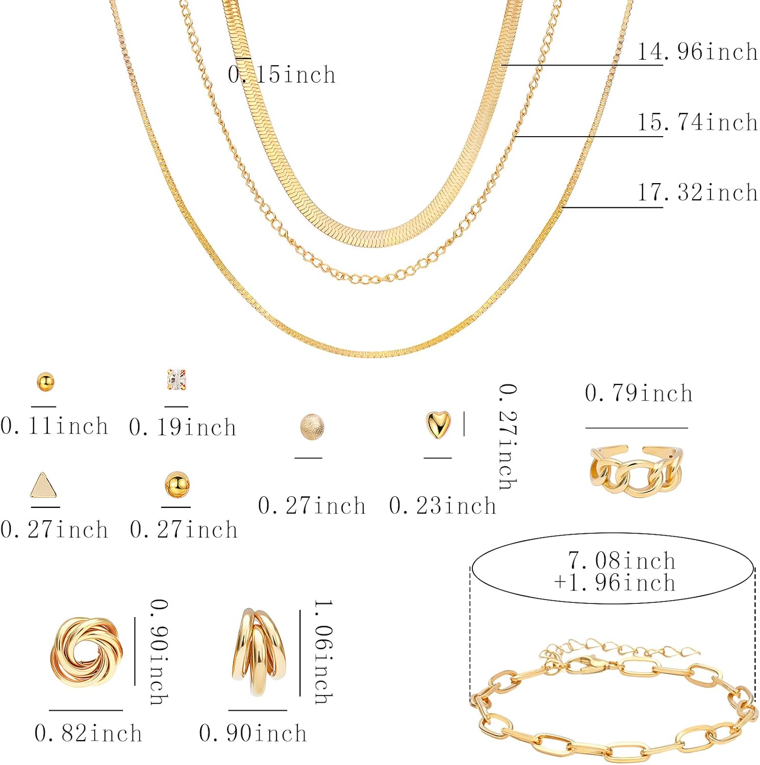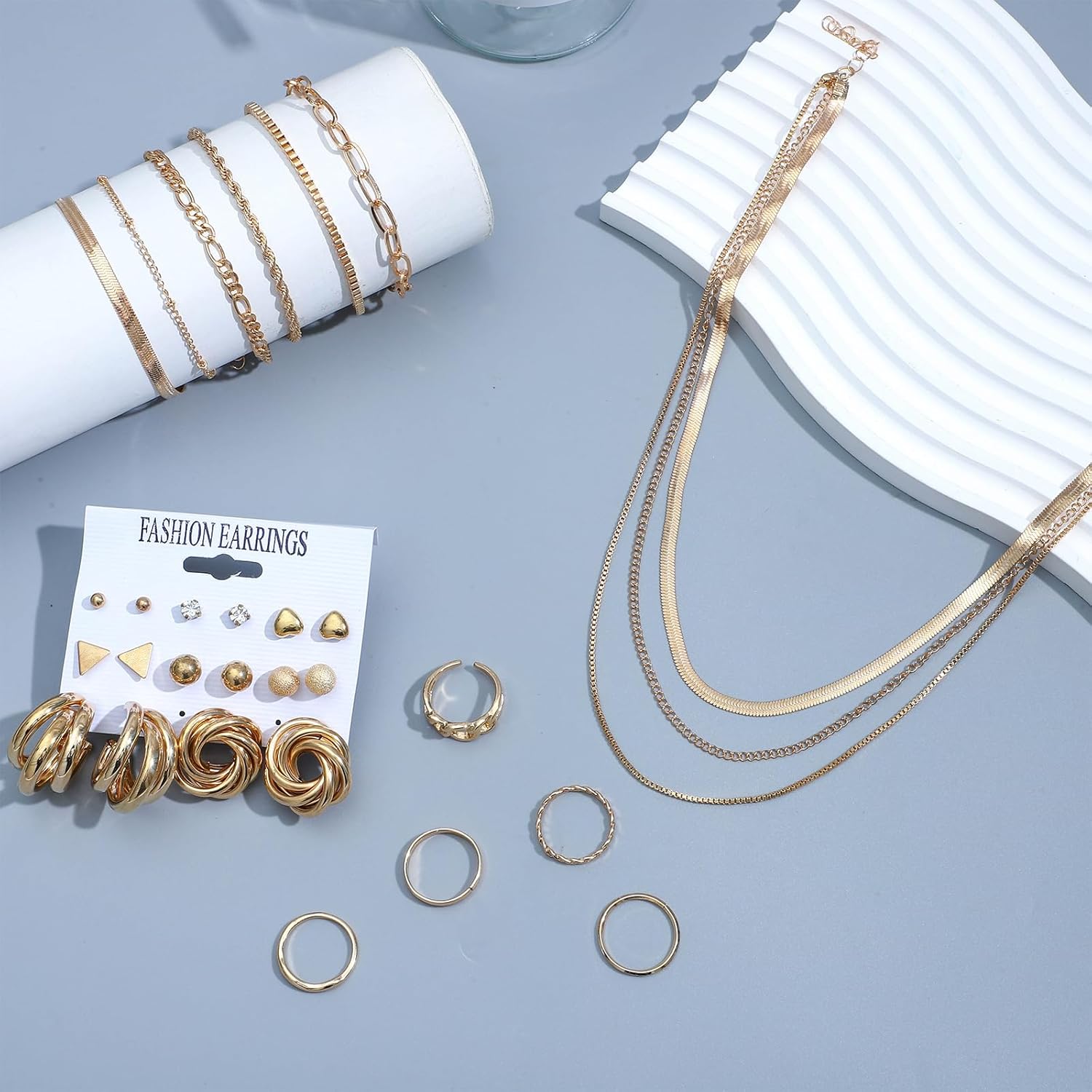 NEWITIN 28 Pieces Gold Jewelry Set for Women Fashion Costume Jewelry Gold Plated Necklace Bracelet Ring Earrings Set for Women