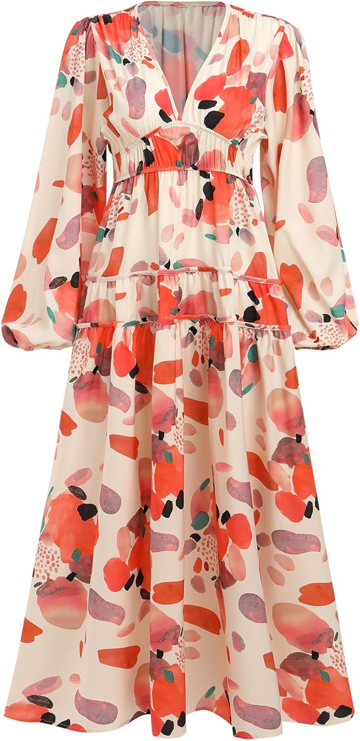 Ladies Lengthy Sleeve Boho Costume Informal V Neck Midi Costume Boho Maxi Dress for WomenBoho Maxi Dress for Women