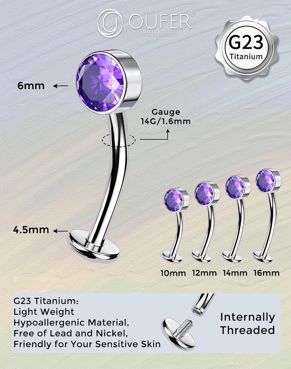 OUFER Titanium Belly Button Rings, 14G Floating Navel Piercing Jewelry, Purple/Blue/Pink/Clear CZ Internal Thread Belly Rings For Women Men, Silver Belly Piercing Jewelry