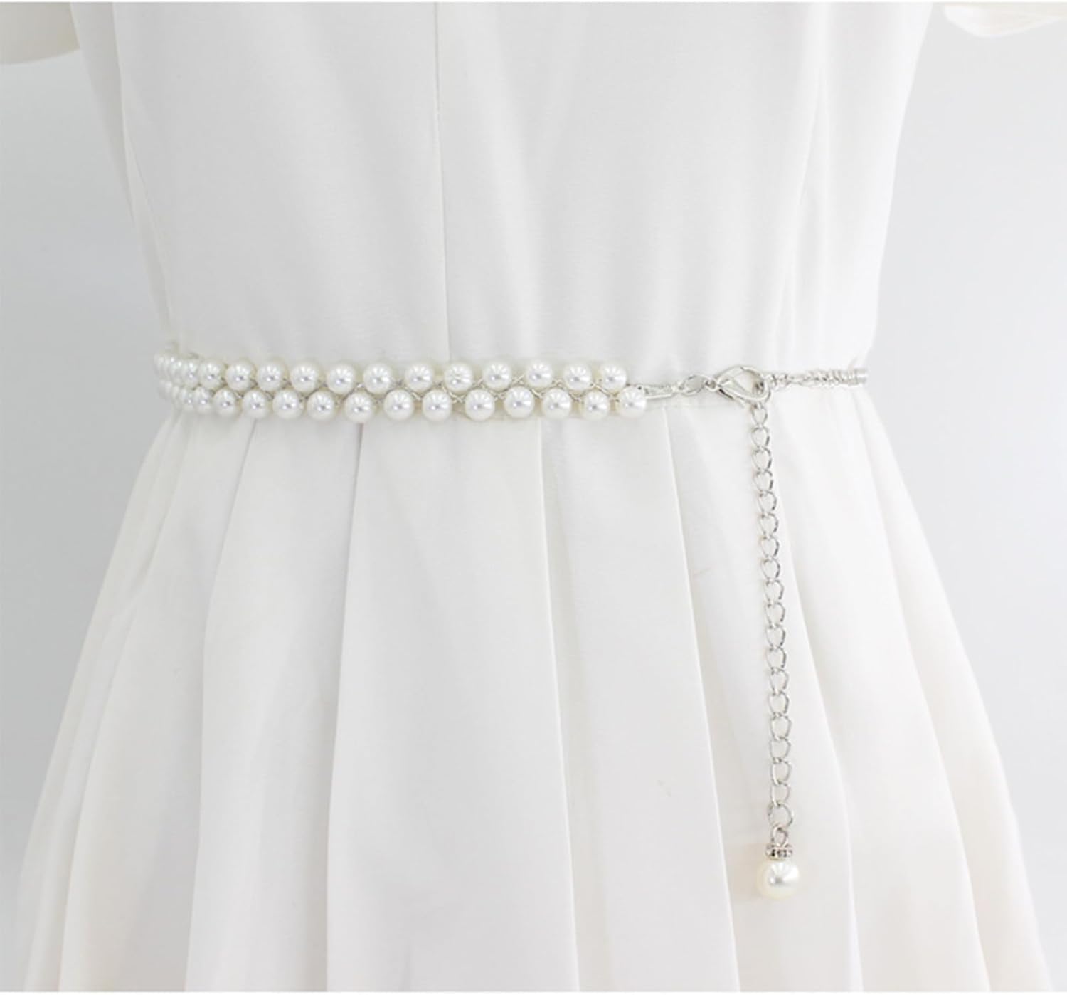 Pearl Belts for Formal Women Dress Pearl Waist Chain for Women Layered Waist Chain Belt Handmade Pearl Body Chain Charm Bridal Dresses Belt Adjustable Accessory for womenFashion Jewelry Gifts