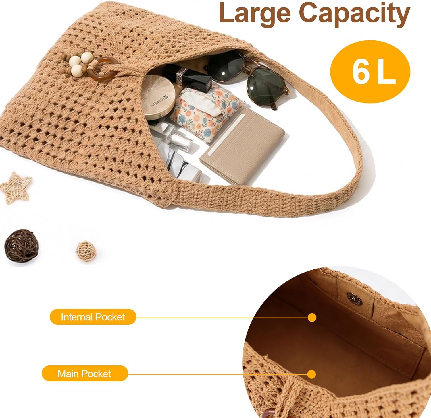 Peicees Crochet Summer Purse, Boho Woven Purse for Travel Beach Vacation Cruise Knit Shoulder Bag for for Women Ladies