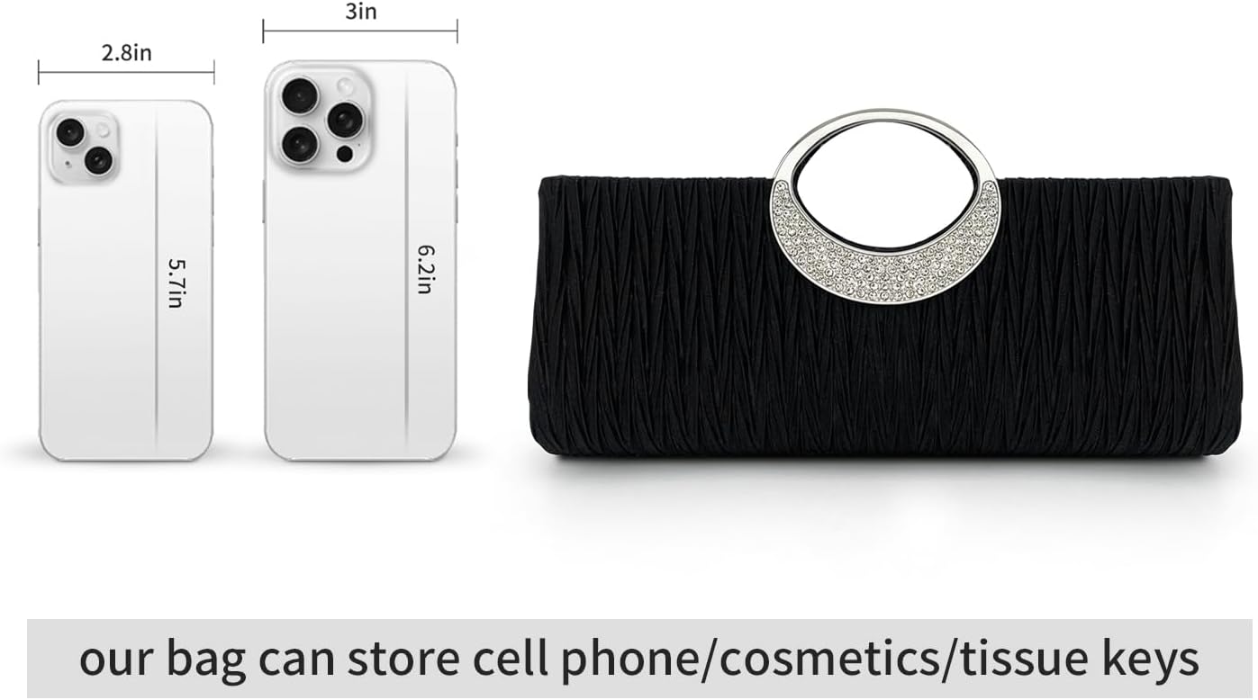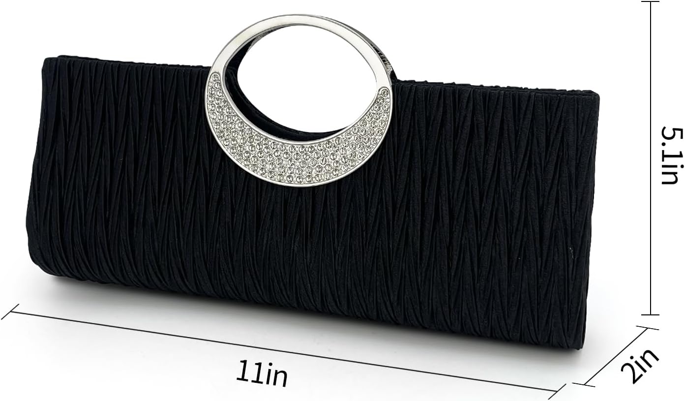 Be the first to review “Pleated Satin Clutch for Women | Rhinestone Handle Evening Bag | Long Formal Party Purse Bride Wedding Prom Handbag”