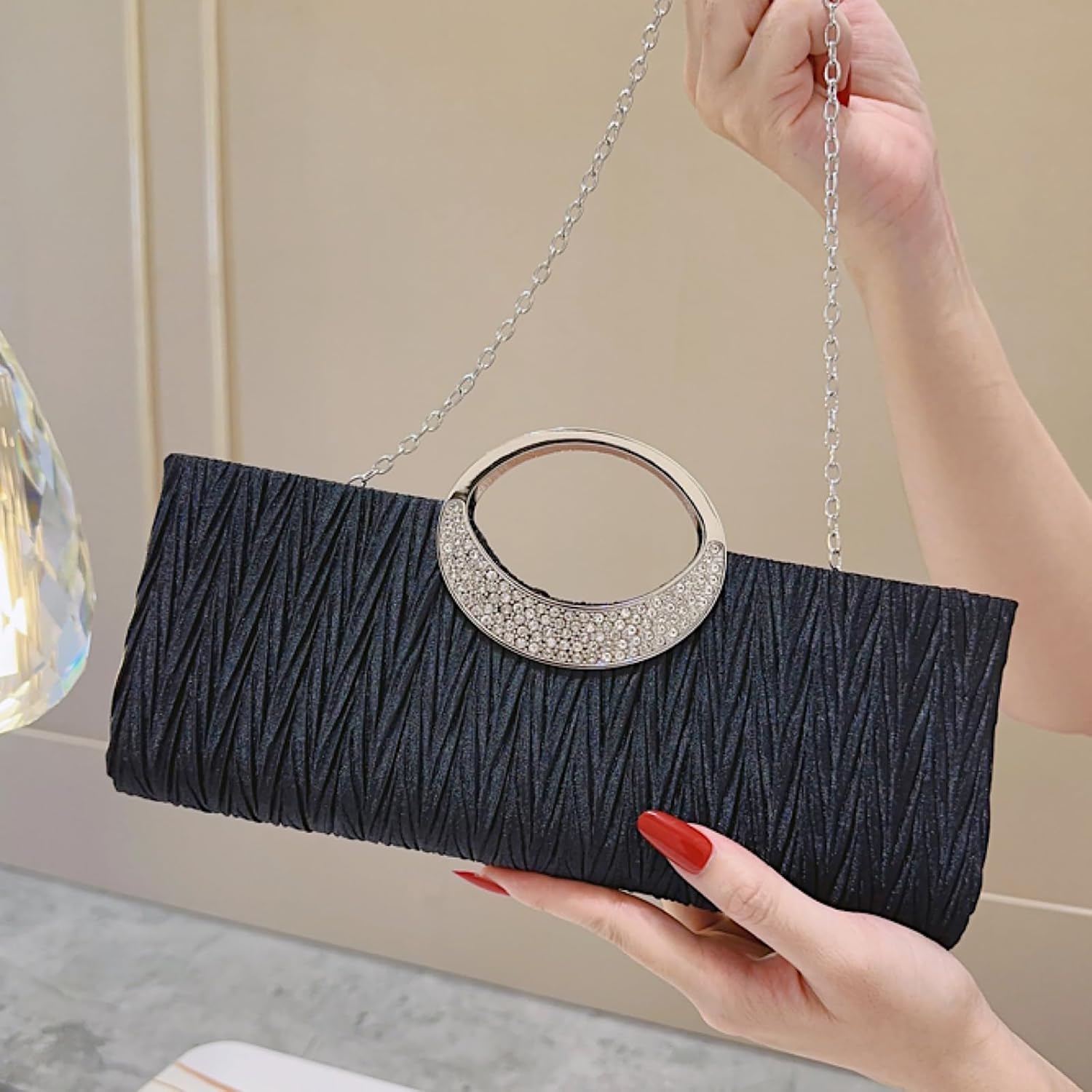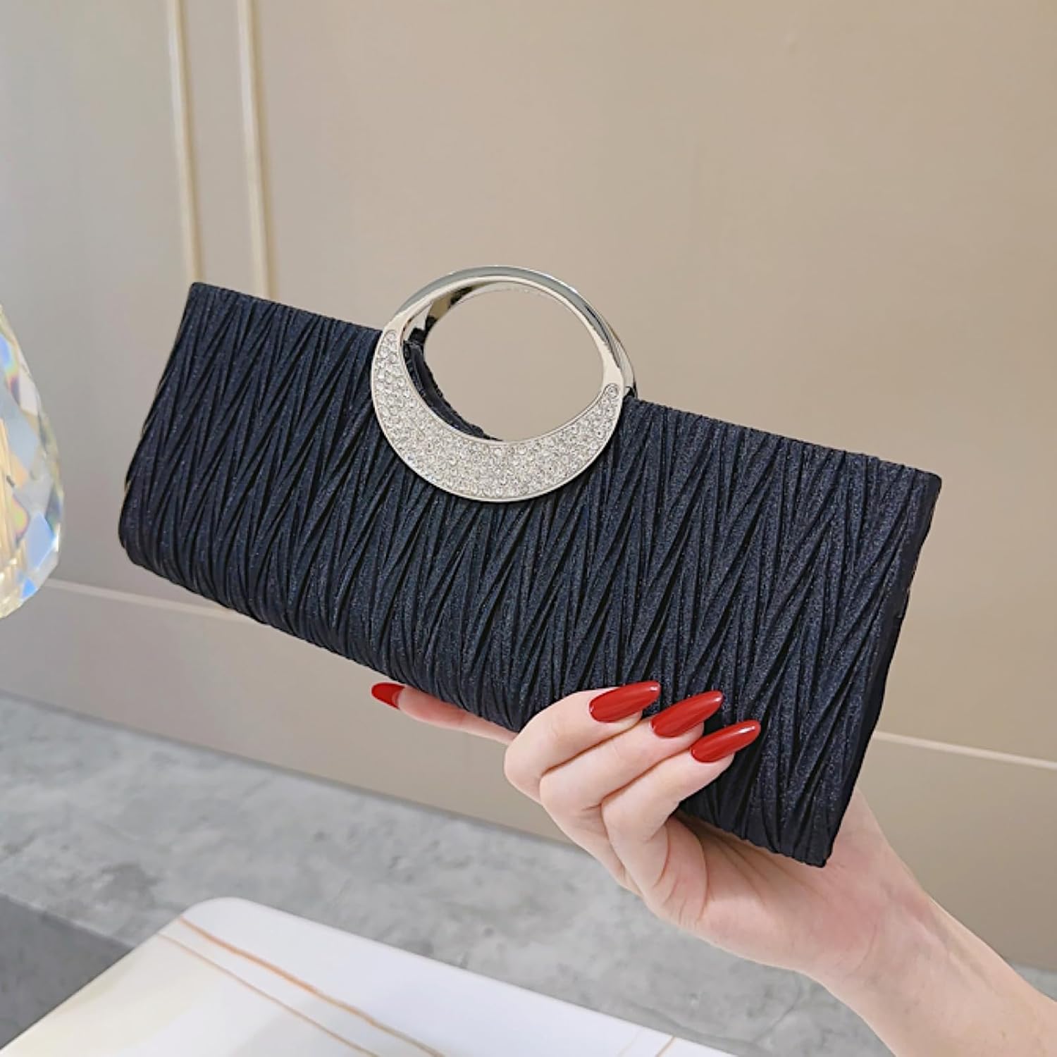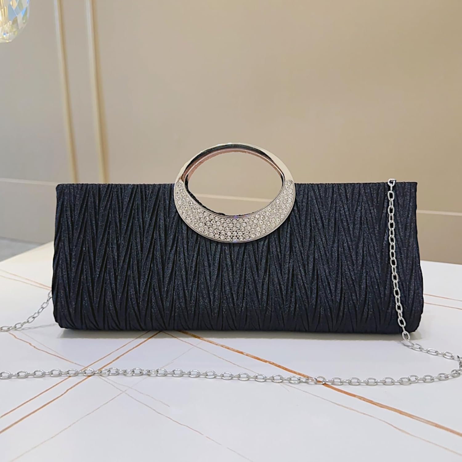 Uncover Sophistication with the GowiXiuli Pleated Satin & Rhinestone Clutch!