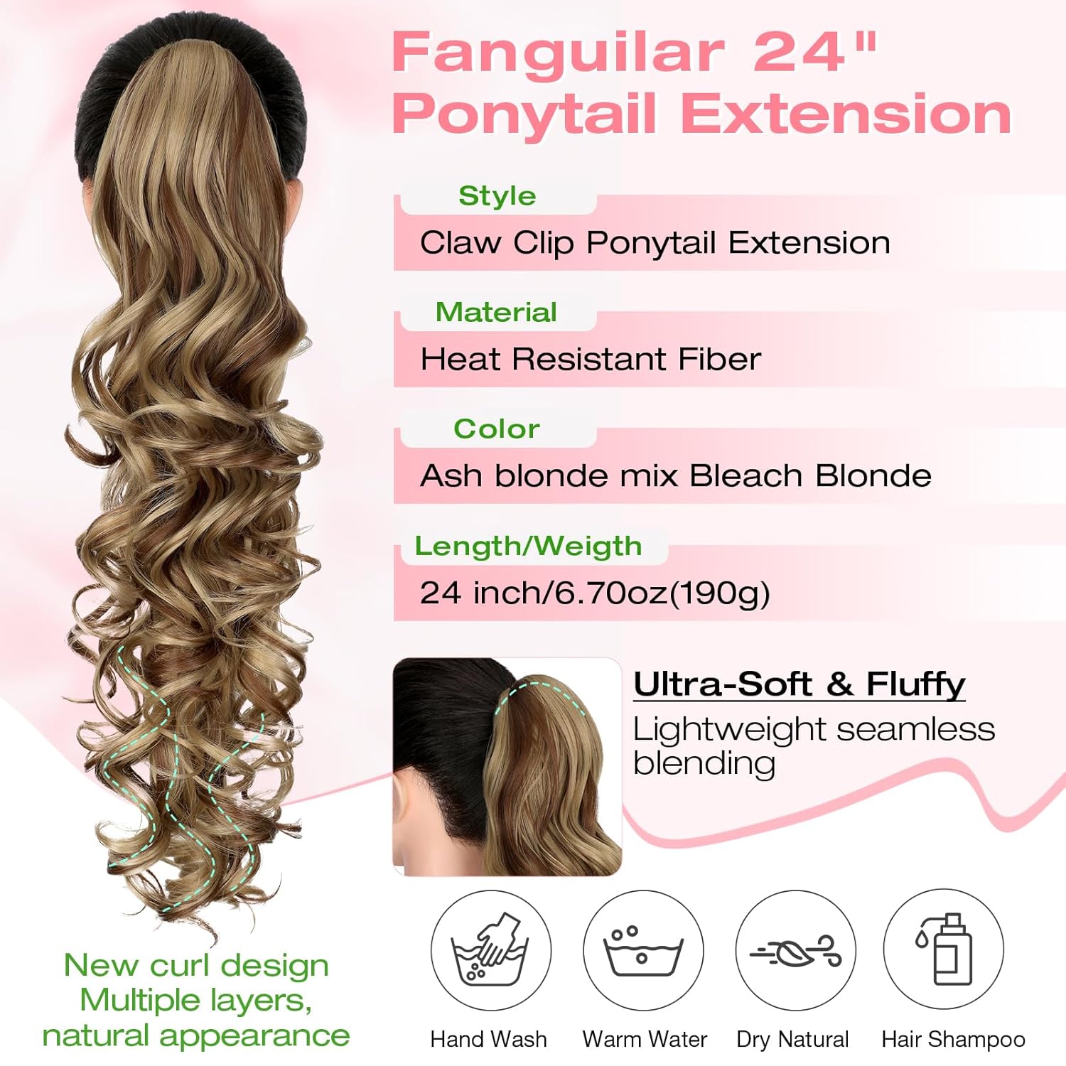Gentle, Full However Light-weight: Fanguilar 24″ ponytail extension are manufactured from premium artificial fibers, protected, snug, stunning, mild, really feel like their very own hair. The total-coverage design ensures a flawless mix together with your pure hair, others can hardly see you put on ponytail extension