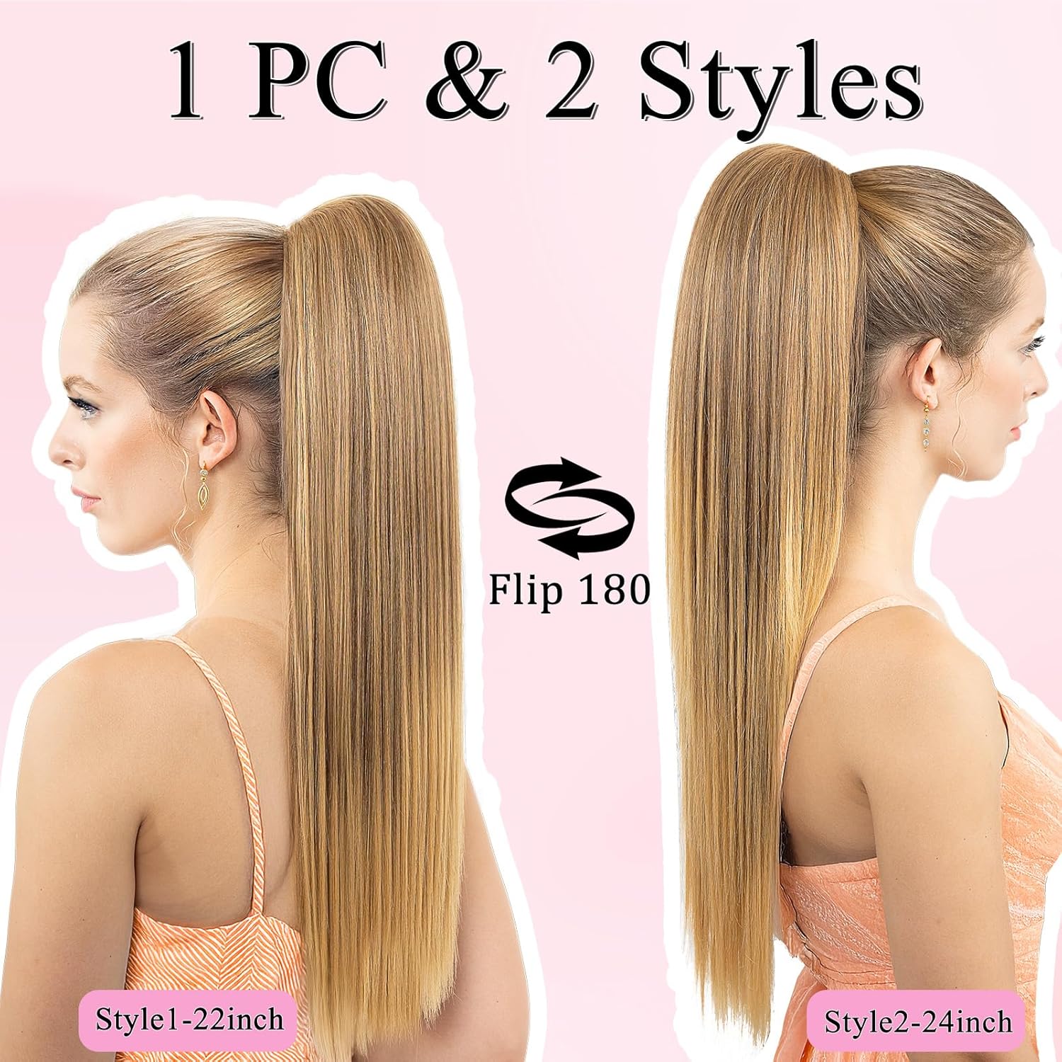 [Reversible Two Style Ponytail]: This 22”-24” ponytail extension provides you the choice of two kinds: barely layered or multi-layered. Simply flip the clip to simply change between a easy, smooth look and a fuller, voluminous layered model, letting you select your most well-liked look with ease.