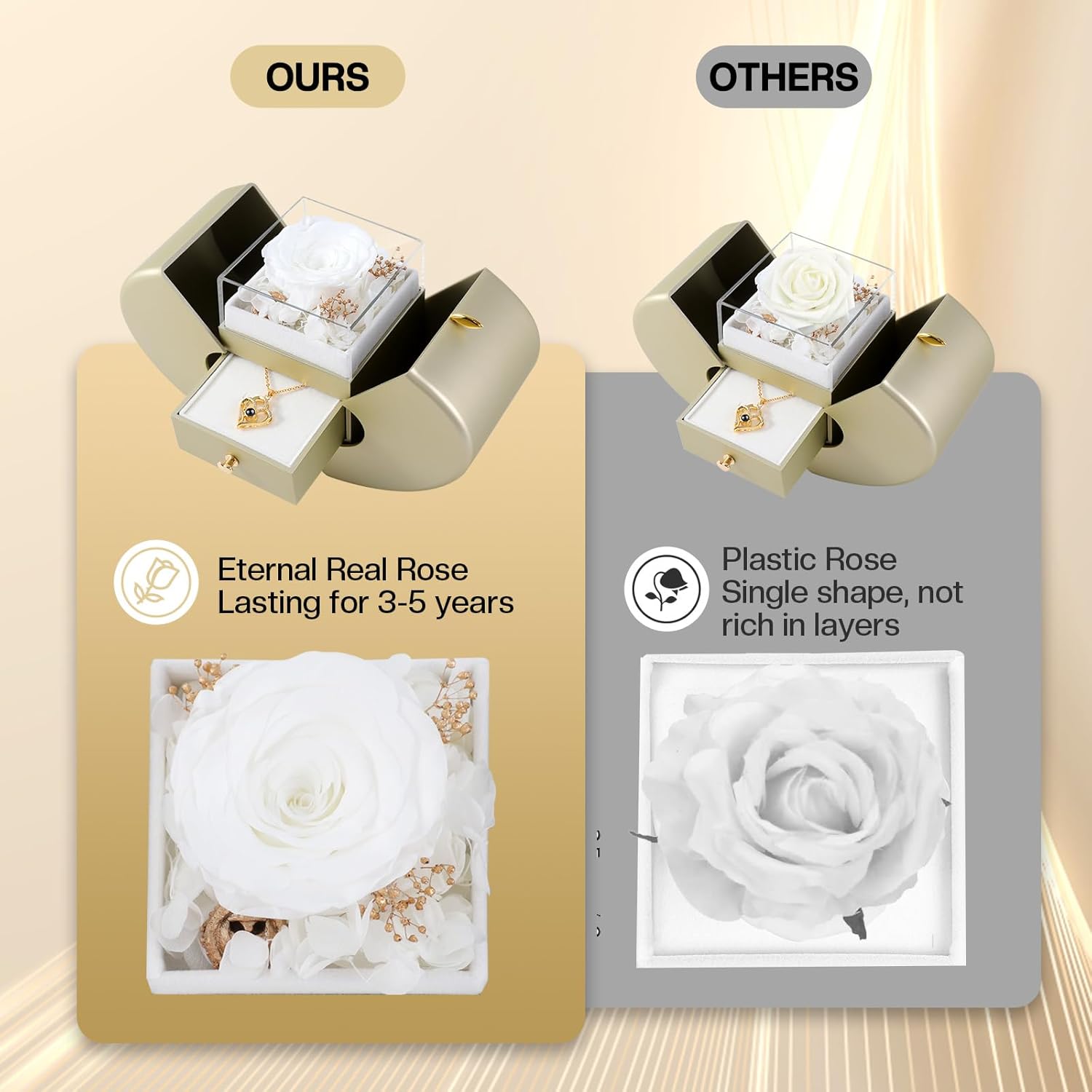🌹【Cute Preserved Rose】What could possibly be extra enticing to ladies than these two issues? This can be a beautiful present with distinctive design, which means distinctive love.The preserved flower by no means withers means everlasting love.It’s the finest Christmas Items to your lover, everlasting flower, endlessly love, could be saved for 3-5 years with out watering and administration.