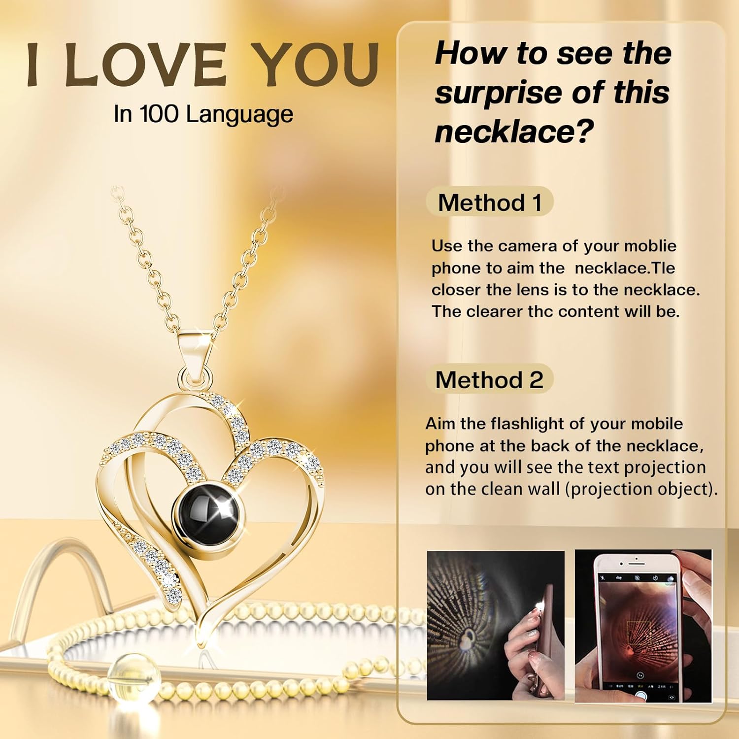 🌹【The best way to See]The necklace is within the plastic bag within the drawer of the jewellery field. It’s essential alter the necklace and put it within the drawer. the I Love You in 100 Languages】In a well-lit surroundings , convey the stone in the midst of the necklace near your eyes .Or go to a darkish space with little to no mild , activate the digicam perform of the cellphone and level the digicam on the stone .You will note 100 languages on the display screen.