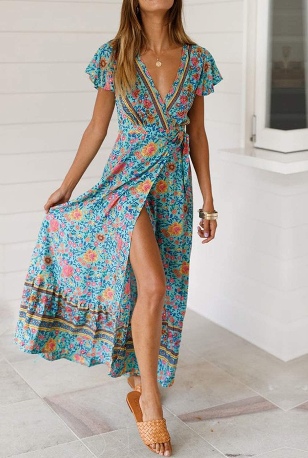 Wrap Entrance Flare Maxi Gown Good For Each Physique Kind.