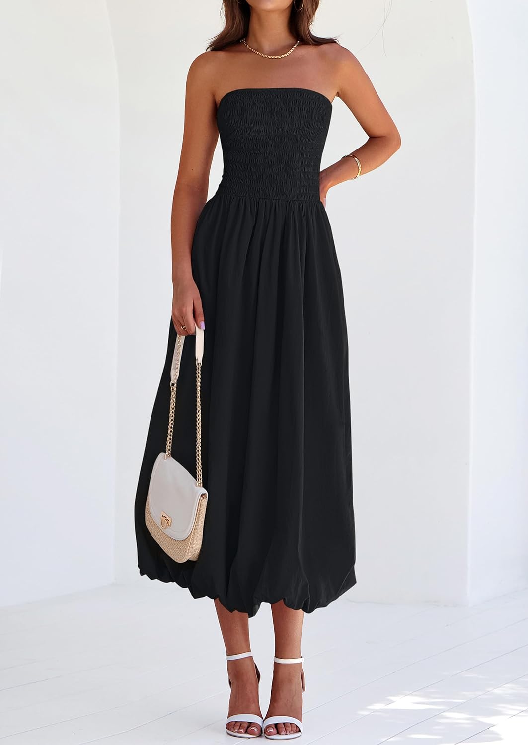 PRETTYGARDEN Elegant Summer season Midi Attire for Girls Stylish Strapless Costume