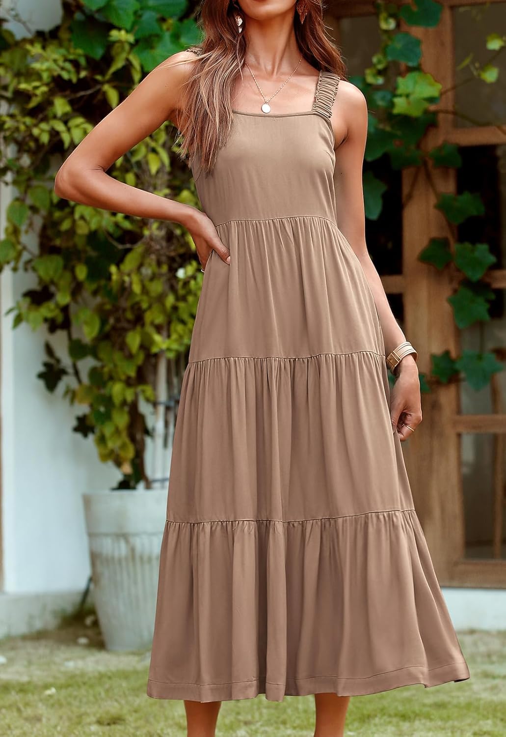 PRETTYGARDEN Informal Summer season Clothes for Girls 2025 Seaside Flowy Tiered Maxi Costume