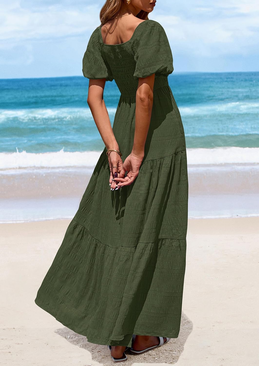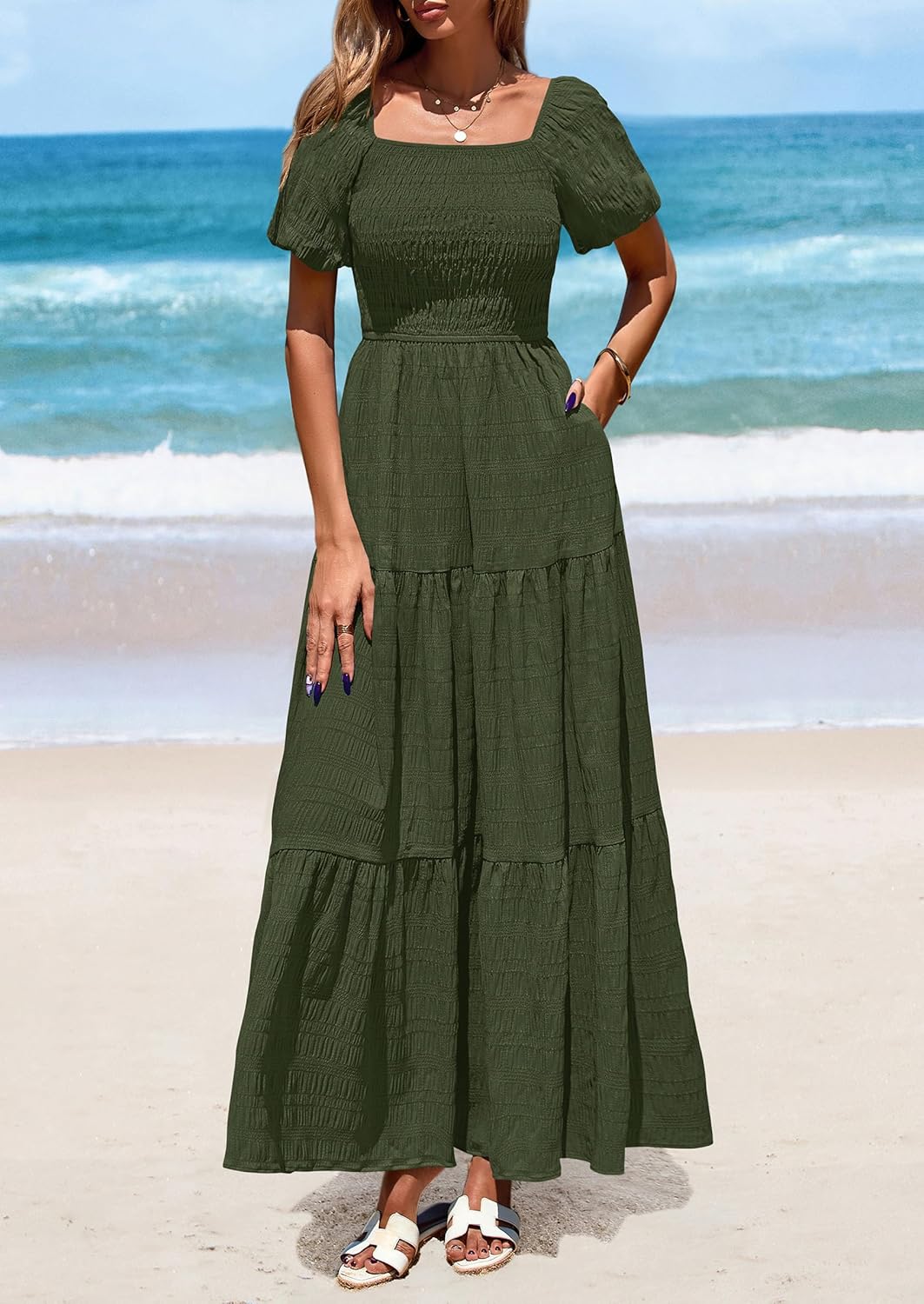 PRETTYGARDEN Maxi Summer time Attire for Ladies Informal Tiered Ruffle Costume