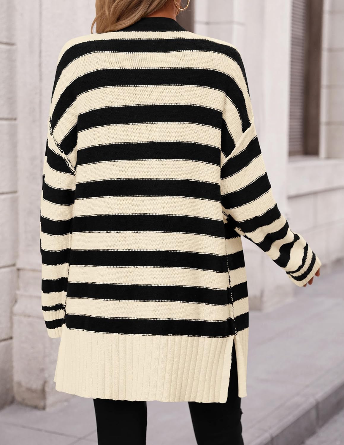 PRETTYGARDEN Chunky Cable Knit Sweater Ladies Outsized Striped Cardigan