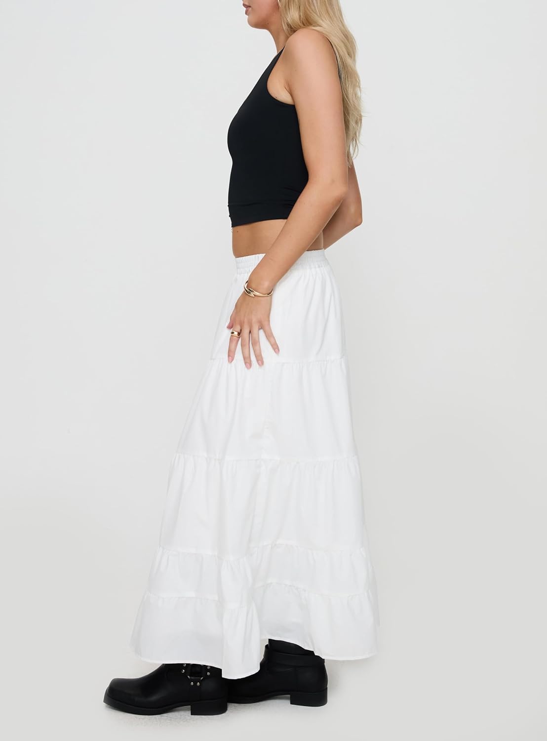 Tiered, timeless and dreamy. This flowy maxi skirt is the definition of easy power.