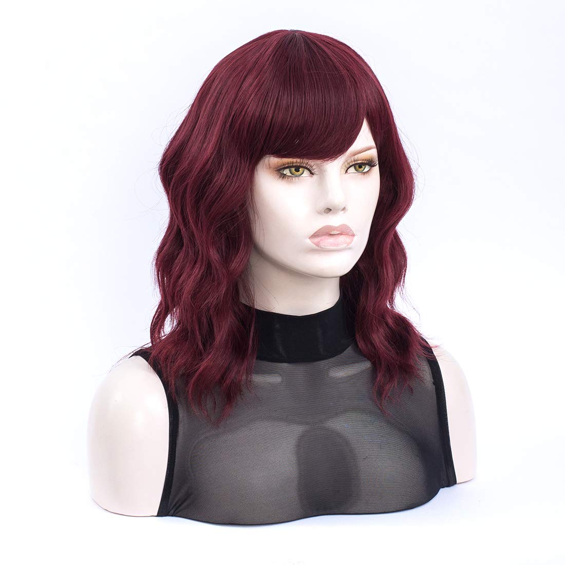 THIS SHOULDER LENGTH DARK RED WAVY FULL BANG WIG IS WELL DESIGNED FOR SELFIE, COSPLAY AS WELL AS EVERY DAY WEAR, ITS STYLE PERFECT MATCH STREET FASHION.