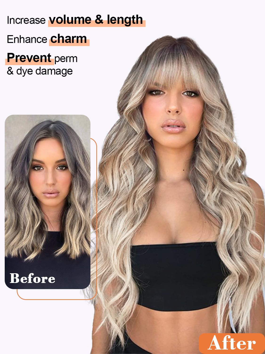 Premium Warmth-Resistant Fibers Crafted from high-quality, heat-resistant artificial hair fibers, this wig combats frizz and maintains its model all day. The strands are smooth, tangle-resistant, and mimic the feel of actual hair. Its life like bangs are absolutely customizable—trim or model them into ethereal, pure, or sparse bangs to completely body any face form.