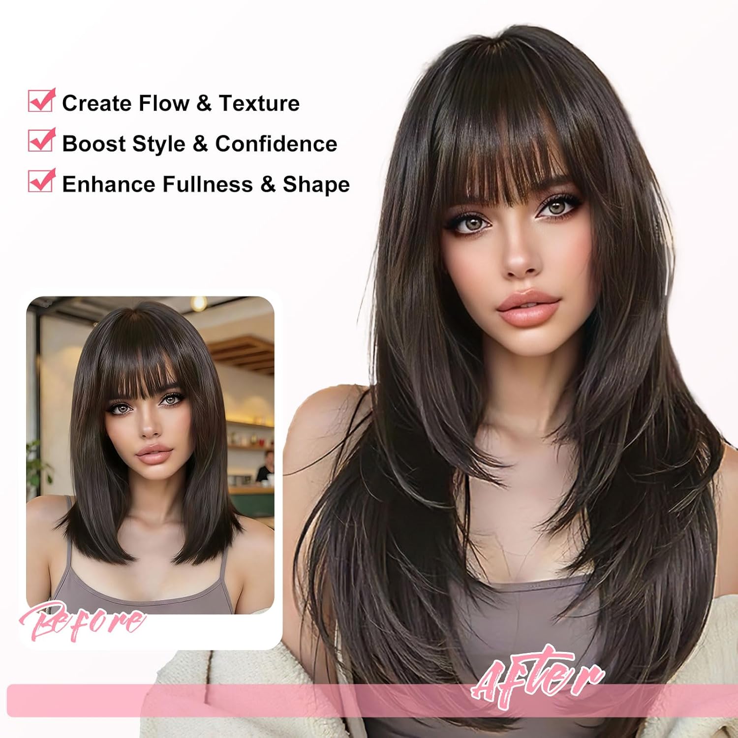 【Immediate Quantity & Size】Add on the spot quantity and size with these lengthy straight clip-in extensions. The layered ends create pure motion and fullness, supplying you with hair that appears thicker and more healthy in seconds—supreme for skinny or flat hair