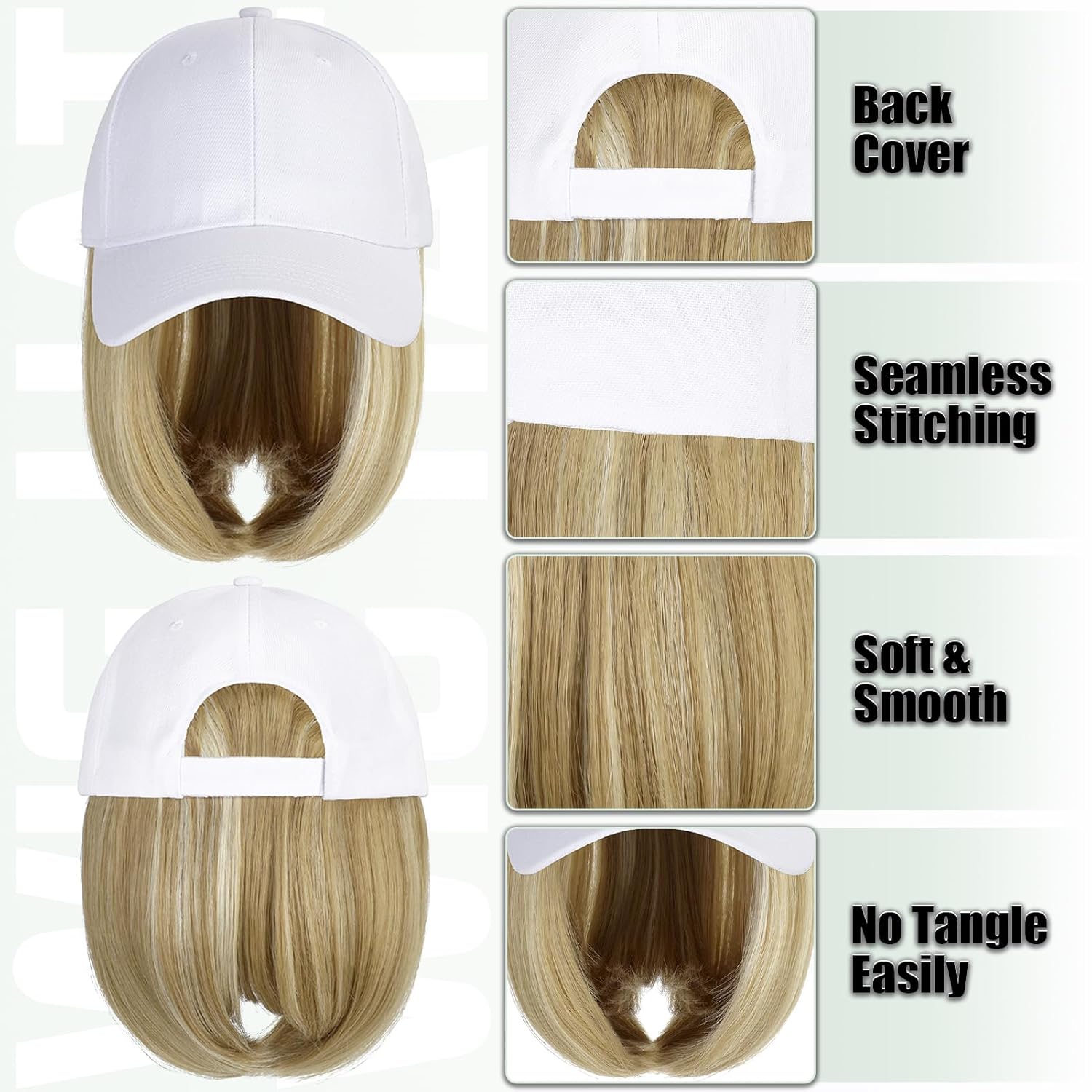 Specification & Materials: Baseball cap with straight bob hair is 14inch. The hairpiece is 8inch and weight about 0.3ib. The baseball cap wig is made of top of the range artificial fiber. Full, tender and tangle-free