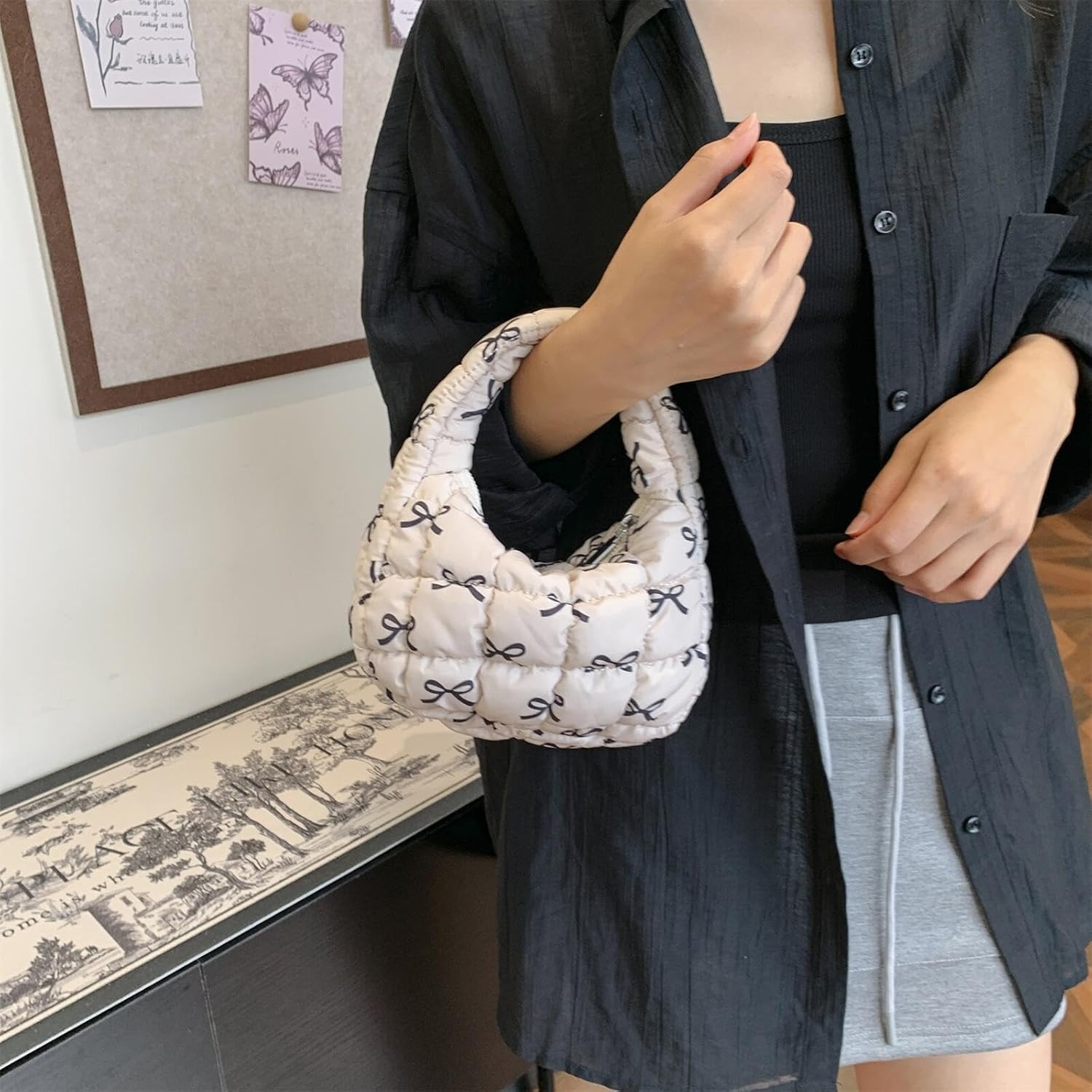 Quilted MINI Handbag and Purses Women Puffer Nylon Hobo Cotton Padded Purse Work Travel Lightweight