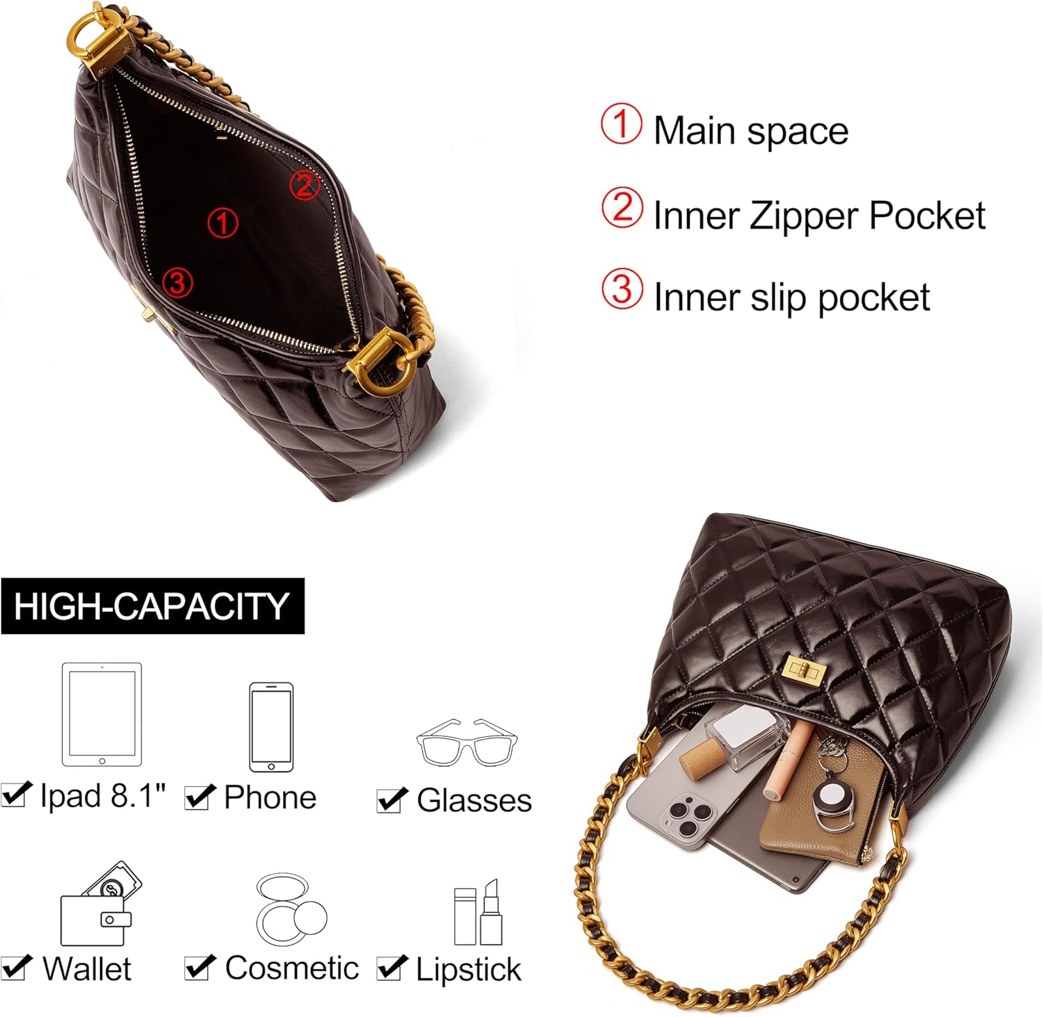 Quilted Shoulder Bag for Women Designer Crescent Hobo Purse with Chunky Chain Shoulder Strap
