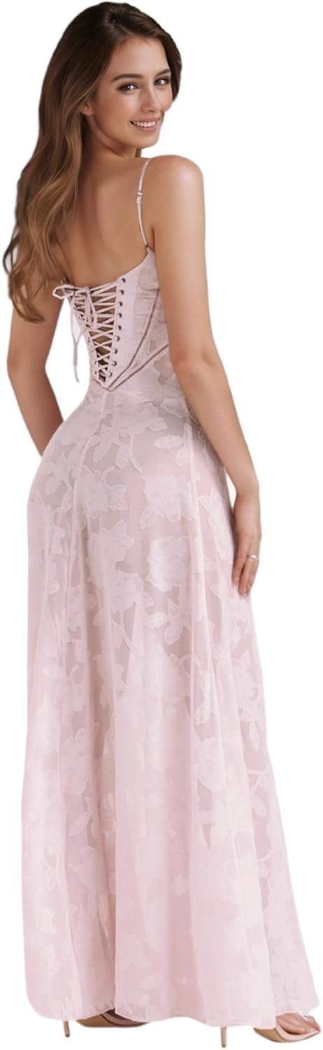 RARITYUS Girls’s Elegant Floral Lace Marriage ceremony Visitor Costume Sleeveless Spaghetti Strap Maxi Costume Lace-up Cocktail Get together Costume